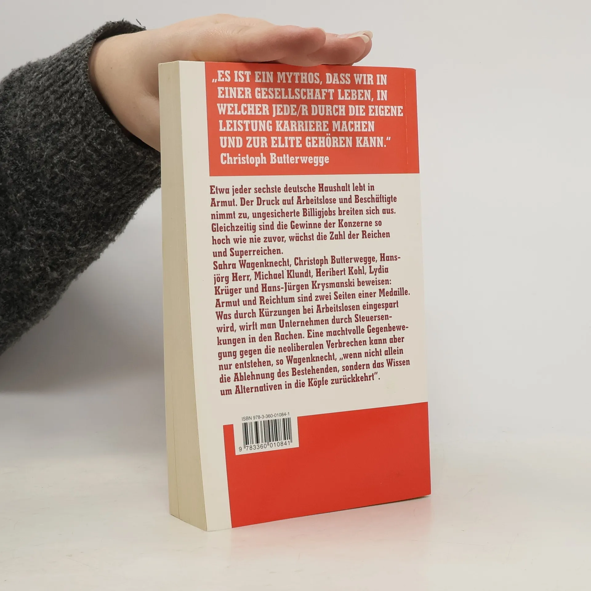 Etwa jeder sechste deutsche Haushalt lebt in Armut. Der Druck auf Arbeitslose und Beschäftigte nimmt zu, ungesichterte Billigjobs breiten sich aus. Gleichzeitig sind die Gewinne der Konzerne so hoch wie nie zuvor, wächst die Zahl der Reichen und Superreichen.§Sahra Wagenknecht, Christoph Butterwegge, Hansjörg Herr, Michael Klundt, Heribert Kohl, Lydia Krüger und Hans-Jürgen Krysmanski beweisen: Armut und Reichtum sind zwei Seiten einer Medaille. Was durch Kürzungen bei Arbeitslosen eingespart wird, wirft man Unternehmen durch Steuersenkungen in den Rachen. Eine machtvolle Gegenbewegung gegen die neoliberalen Verbrechen kann aber nur entstehen, so Wagenknecht, 'wenn nicht allein die Ablehnung des Bestehenden, sondern das Wissen um Alternativen in die Köpfe zurückkehrt.'