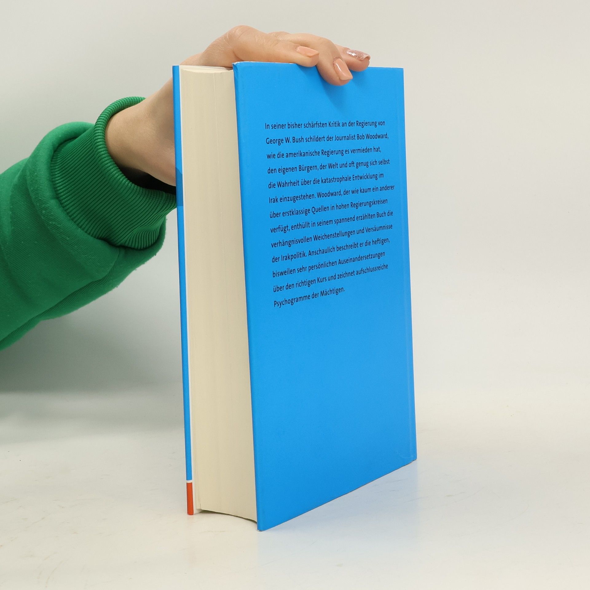Was man nicht aus den Nachrichten erfährt Bob Woodward steht für gut recherchierte Geschichten aus den inneren Zirkeln der Macht in Amerika. Er sammelt Episoden, die ihm zugetragen werden, Protokolle vertraulicher Sitzungen, Geheimpapiere und Aussagen hochrangiger Regierungsmitarbeiter, die sich ihm unter der Zusicherung von Anonymität anvertrauen. Manche äußern sich offen in Interviews, wie Ex-Verteidigungsminister Donald Rumsfeld, und was sie sagen, fügt einen weiteren Mosaikstein in das düstere Bild, das Woodward in seinem neuen Buch zeichnet: Die Bush-Regierung verdrängt die Realität, agiert kopflos und belügt die Welt, nicht nur im Hinblick auf die verheerenden Zustände im Irak. Detailliert belegt er das krasse Missverhältnis zwischen dem Wissen der US-Administration und ihren öffentlichen Aussagen. • Ein ernüchternder Blick hinter die Kulissen des Weißen Hauses • Spannend erzählt: Unwahrheiten, Intrigen, Inkompetenz und Realitätsverlust der Mächtigen