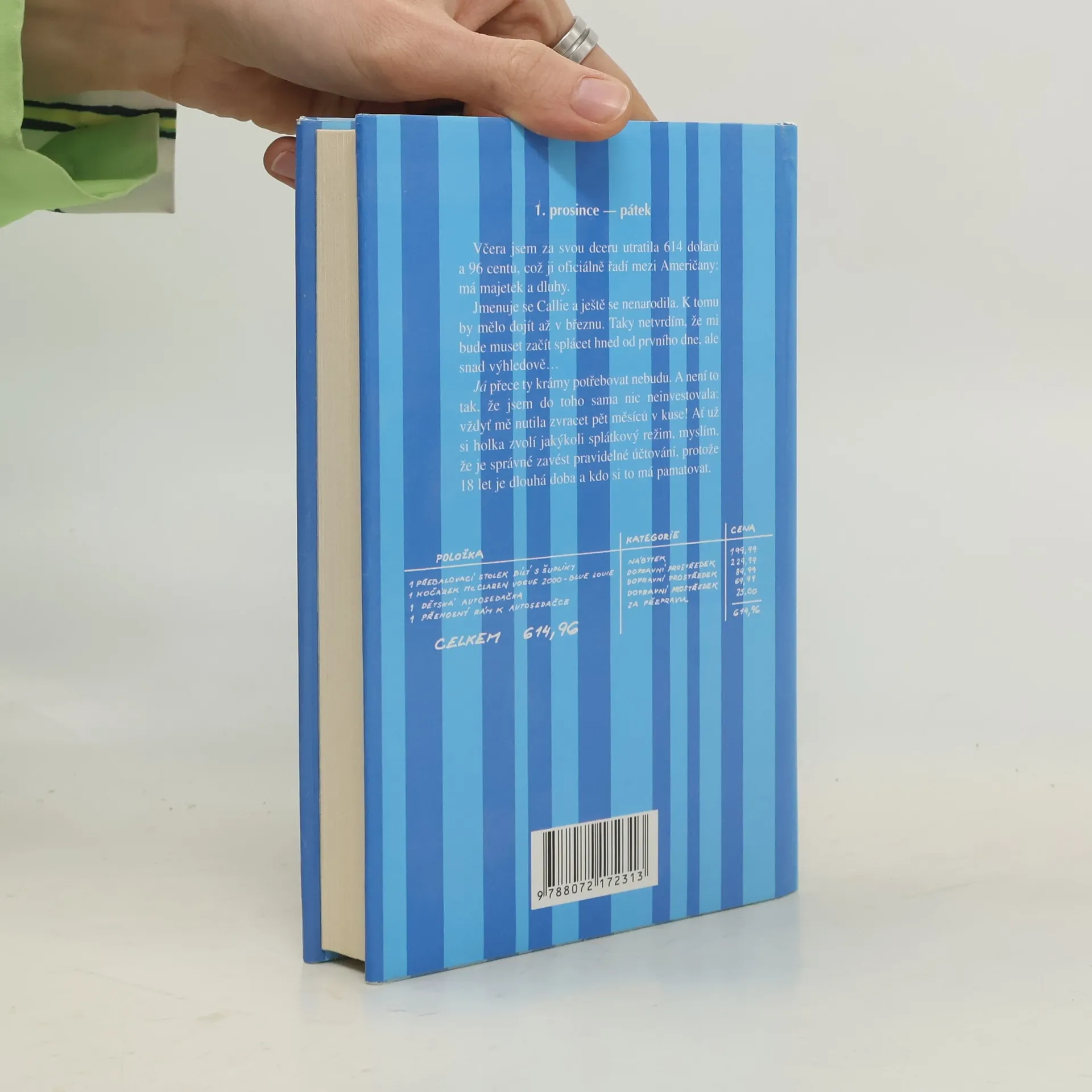 Čtyřicetiletá žena se po dlouhém váhání odhodlá mít dítě. Zhostí se svého předsevzetí bez sentimentu a racionálně. Součástí jejího rozhodnutí je také záměr zaznamenat pro svého potomka vše, co pro něj musí podstoupit, a především všechny výdaje, co s ním od prvního měsíce těhotenství má. Vzniká tak poutavá, podivuhodně realistická reflexe obav i očekávání ženy v prvním roce mateřství. Svérázná, autobiograficky laděná výpověď americké spisovatelky, dramatičky a herečky se pohybuje na pomezí dvou žánrů – účetnictví a deníku ve stylu Bridget Jonesové. Tato svěží a vtipná kniha strhne svou originalitou od prvního odstavce. Čtenářky a čtenáře možná zpočátku zaskočí cynismus, s nímž matka pro svou dceru střádá své útrapy, ale s přibývajícími stranami si je podmaňuje matčina upřímnost a jedinečný smysl pro humor. Jsme na prahu nového tisíciletí a takové budou jeho matky – ironické, počítající, přesto však stále obětavé a milující.