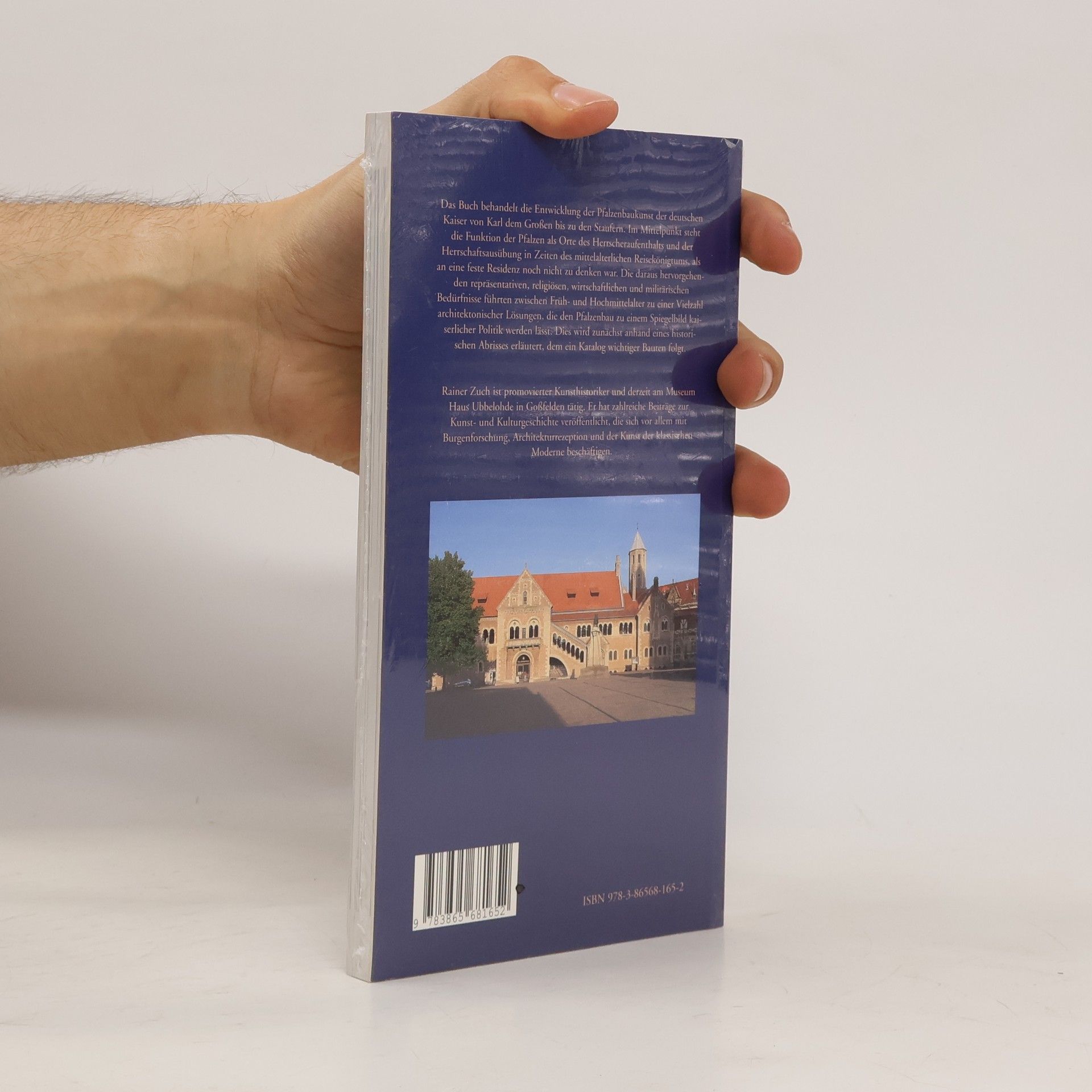 Das Buch behandelt die Entwicklung der Pfalzenbaukunst der deutschen Kaiser von Karl dem Großen bis zu den Staufern. Im Mittelpunkt steht die Funktion der Pfalzen als Orte des Herrscheraufenthalts und der Herrschaftsausübung in Zeiten des mittelalterlichen Reisekönigtums, als an eine feste Residenz noch nicht zu denken war. Die daraus hervorgehenden repräsentativen, religiösen, wirtschaftlichen und militärischen Bedürfnisse führten zwischen Früh- und Hochmittelalter zu einer Vielzahl architektonischer Lösungen, die den Pfalzenbau zu einem Spiegelbild kaiserlicher Politik werden lässt. Dies wird zunächst anhand eines historischen Abrisses erläutert, dem ein Katalog wichtiger Bauten folgt: Aachen, Braunschweig, Eger, Frankfurt, Gelnhausen, Goslar, Hagenau, Ingelheim, Kaiserslautern, Kaiserswerth, Magdeburg, Nimwegen, Nürnberg, Paderborn, Seligenstadt, Tilleda, Werla, Wimpfen und Zürich.