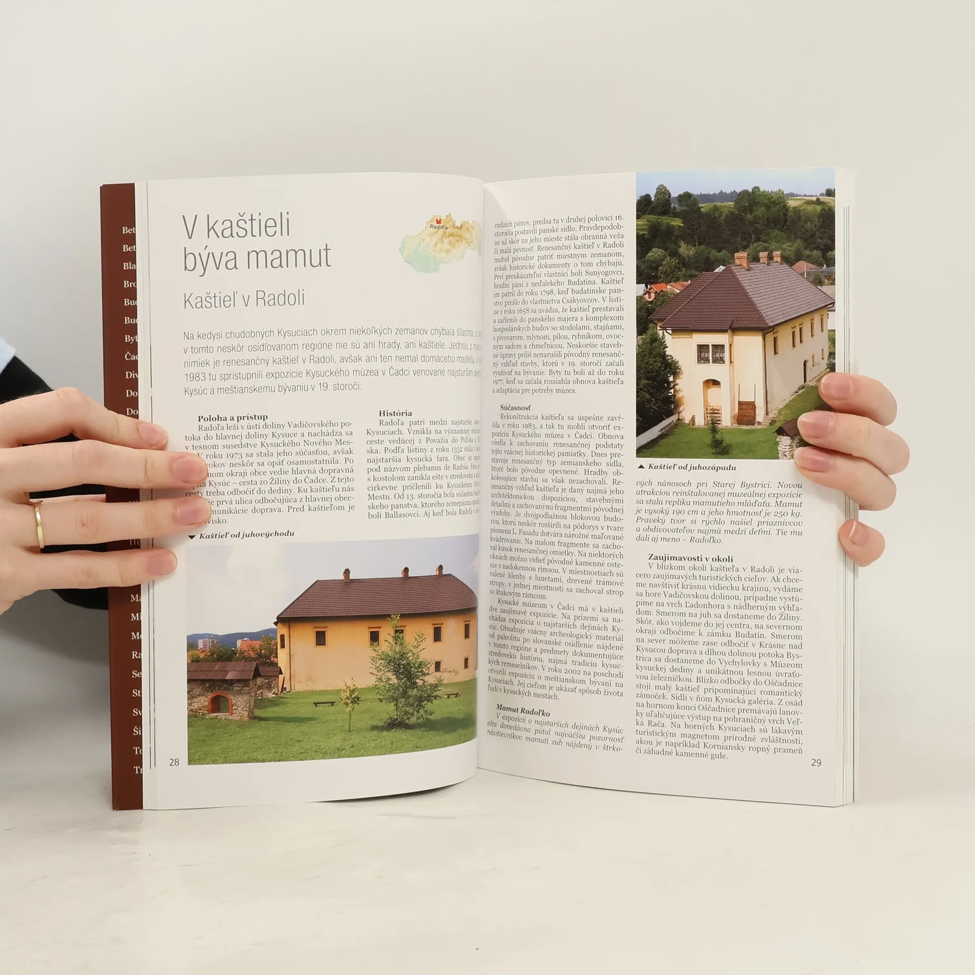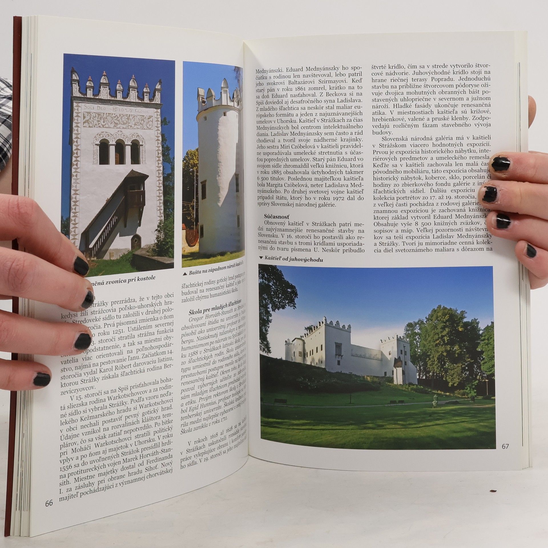Titul sa zameriava na kaštiele, ktoré sú krásne zrekonštruované a hostia múzeá rôzneho charakteru. Obsahuje aj kaštiele, ktoré slúžia ako hotely, domy umelcov a inštitúcie, ako aj historicky významné objekty čakajúce na obnovu. Texty sú doplnené bohatou ilustráciou, starými pohľadnicami a charakteristickými fotografiami. Prezentované sú kaštiele, ako napríklad Kaštieľ v Senici, známy svojím umeleckým zameraním, a kaštiele v Galante, ktoré sú spojené s rodinou Esterházyovcov. Zaujímavé sú aj príbehy z Čachtického kaštieľa, známeho krvavou grófkou, a skleneného kaštieľa v Lednických Rovniach. Kaštieľ v Bytči je spojený s palatínovými nevestami, zatiaľ čo v Radoli sa nachádza mamut. K ďalším zaujímavým miestam patrí kaštieľ v Topoľčiankach, sídlo mocných, a kaštieľ v Blatnici, ktorý je spojený s pioniermi slovenskej kinematografie. Kaštiele v Hanušovciach nad Topľou a Humennom sú tiež významné, pričom v Michalovciach sa nachádza kaštieľ spojený s vodou. Rôzne kaštiele ponúkajú aj pridanú hodnotu, ako romantiku v Budmericiach či spojenie s Beethovenom v Dolnej Krupej. Niektoré kaštiele čakajú na obnovu, ako kaštieľ v Holíči, Hlohovci a Šimonovanoch, pričom každý z nich nesie jedinečný príbeh a historický význam.