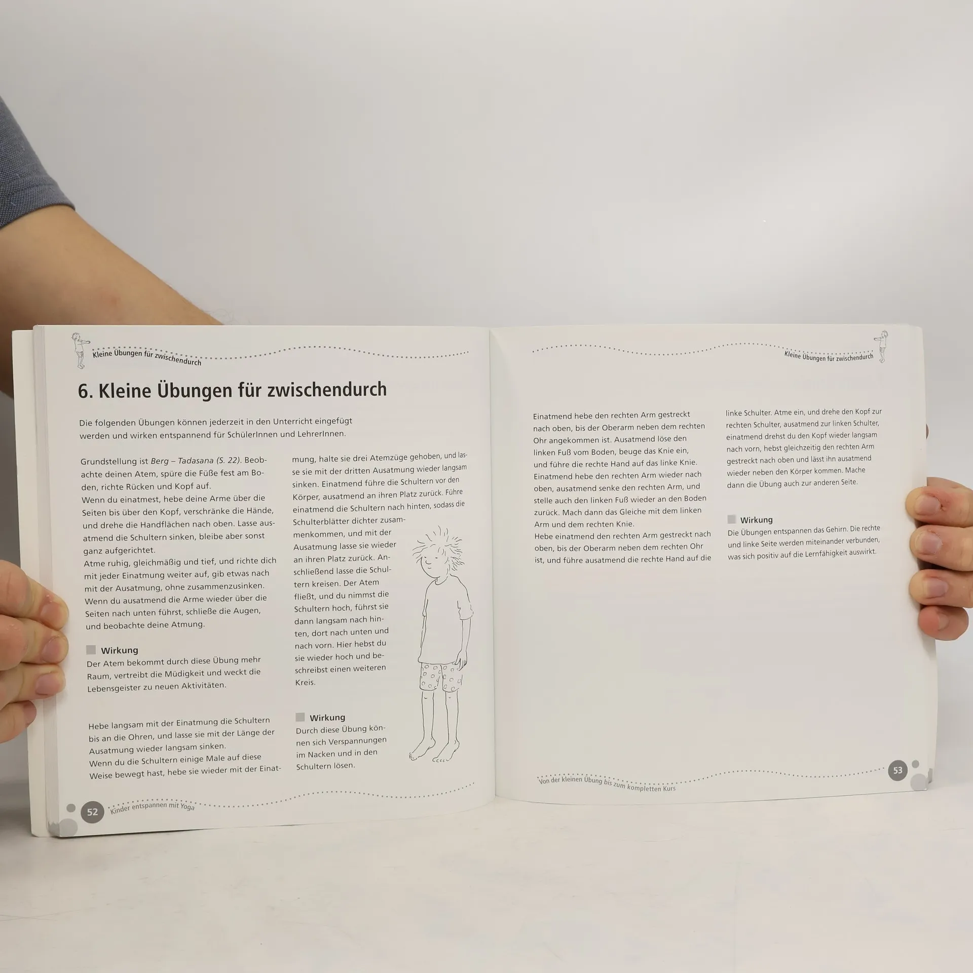 Ratgeber und Methodensammlung für Kindergarten, Grundschule und Förderschule, Klasse 1−4 +++ Wichtig ist nicht, ob man auf dem Kopf stehen kann, sondern welche Gedanken man im Kopf hat – so lautet einer der Grundsätze des Yoga. Mit den Übungen in diesem Handbuch gelingt es schon den Kleinen, die eigenen Kräfte zu bündeln, Bewegungsmangel auszugleichen, Körper und Geist in Einklang zu bringen und zur Ruhe zu kommen. Abwechslungsreiche Anregungen verhindern Langeweile: Neben den klassischen Asanas (Körperhaltungen) liefert Ihnen diese Organisationshilfe Spiele zur Körperwahrnehmung sowie Yoga mit Sprechversen, Vorlesegeschichten und Fantasiereisen, und führt so zu mehr Bewegung im Unterricht. Ob „Elefantenwäsche“ oder „Zauberlöwen-Spiel“ – mit den Übungen und Methoden dieser Ideensammlung fördern Sie die Gesundheit Ihrer Schüler, ihre innere Ausgeglichenheit und ihre Selbstsicherheit. Ob als kleine Übung zwischendurch oder ganze Unterrichtsreihe – mit den ausführlichen didaktischen Kommentaren der Unterrichtsmaterialien können Lehrer sofort loslegen und natürlich auch selbst mitmachen. Die Lehrerhandreichung eignet sich dabei nicht nur für die Unterrichtsvorbereitung und den Einsatz in der Schule, sondern kann auch von Eltern zu Hause verwendet werden, um Entspannung, Konzentration und Körperspannung der Kinder zu fördern.