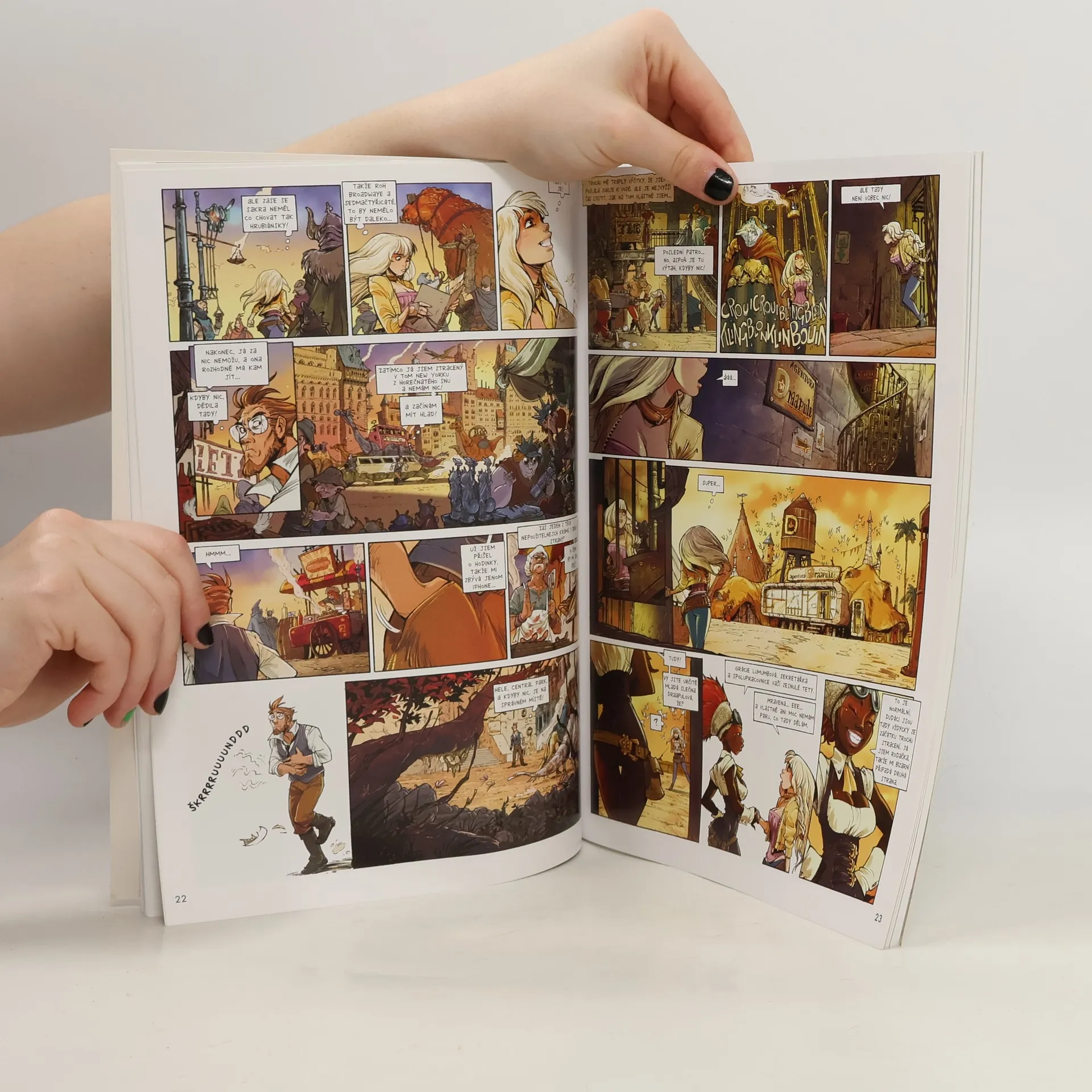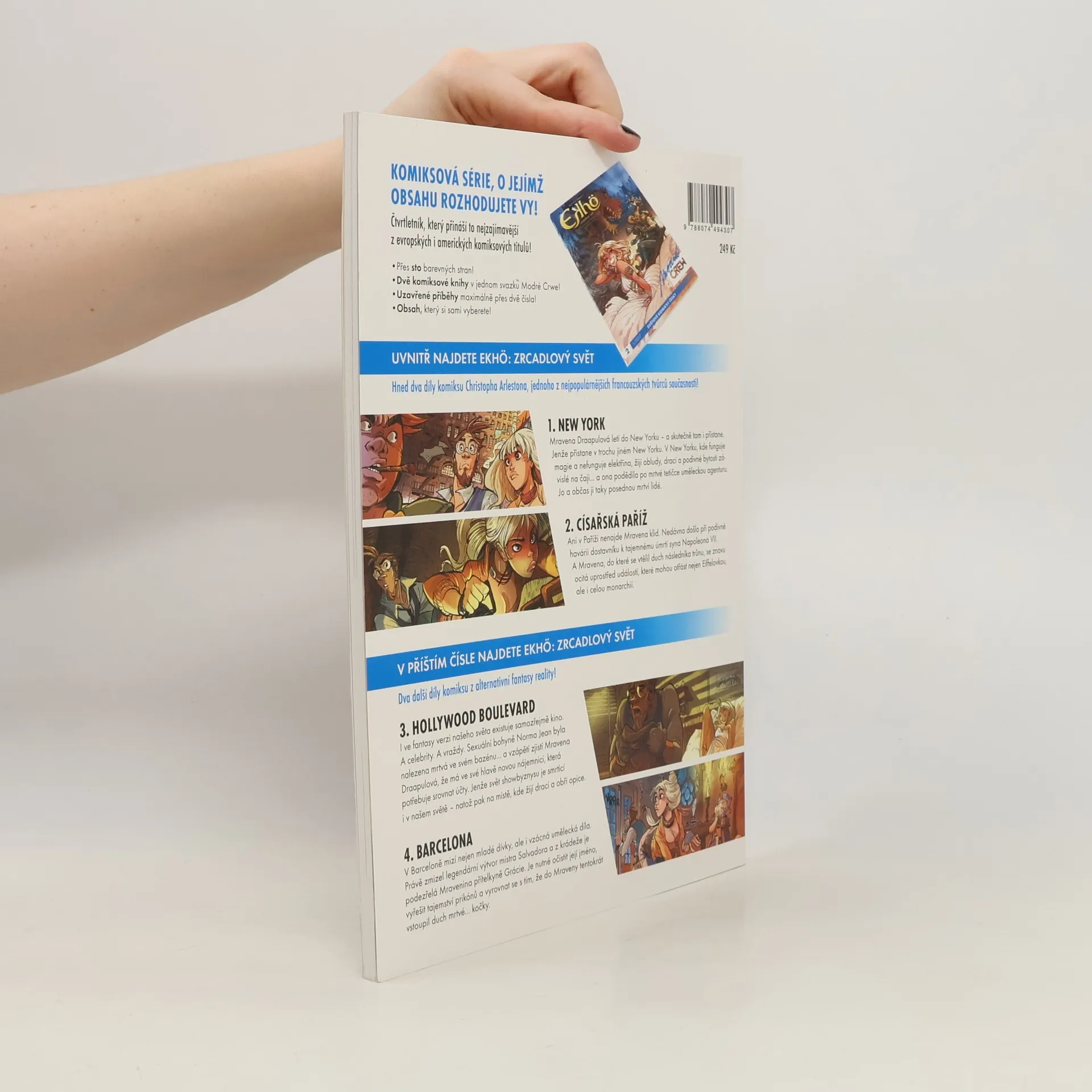 Hned dva díly komiksu Christophe Arlestona, jednoho z nejpopulárnějších francouzských tvůrců současnosti! 1. New York: Mravena Draapulová letí do New Yorku – a skutečně tam i přistane. Jenže přistane v trochu jiném New Yorku. V New Yorku, kde funguje magie a nefunguje elektřina, žijí obludy, draci a podivné bytosti závislé na čaji... a ona podědila po mrtvé tetičce uměleckou agenturu. Jo a občas ji taky posednou mrtví lidé. 2. Císařská Paříž: Ani v Paříži nenajde Mravena klid. Nedávno došlo při podivné havárii dostavníku k tajemnému úmrtí syna Napoleona VII. A Mravena, do které se vtělil duch následovníka trůnu, se znovu ocitá uprostřed událostí, které mohou otřást nejen Eiffelovkou, ale i celou monarchií.