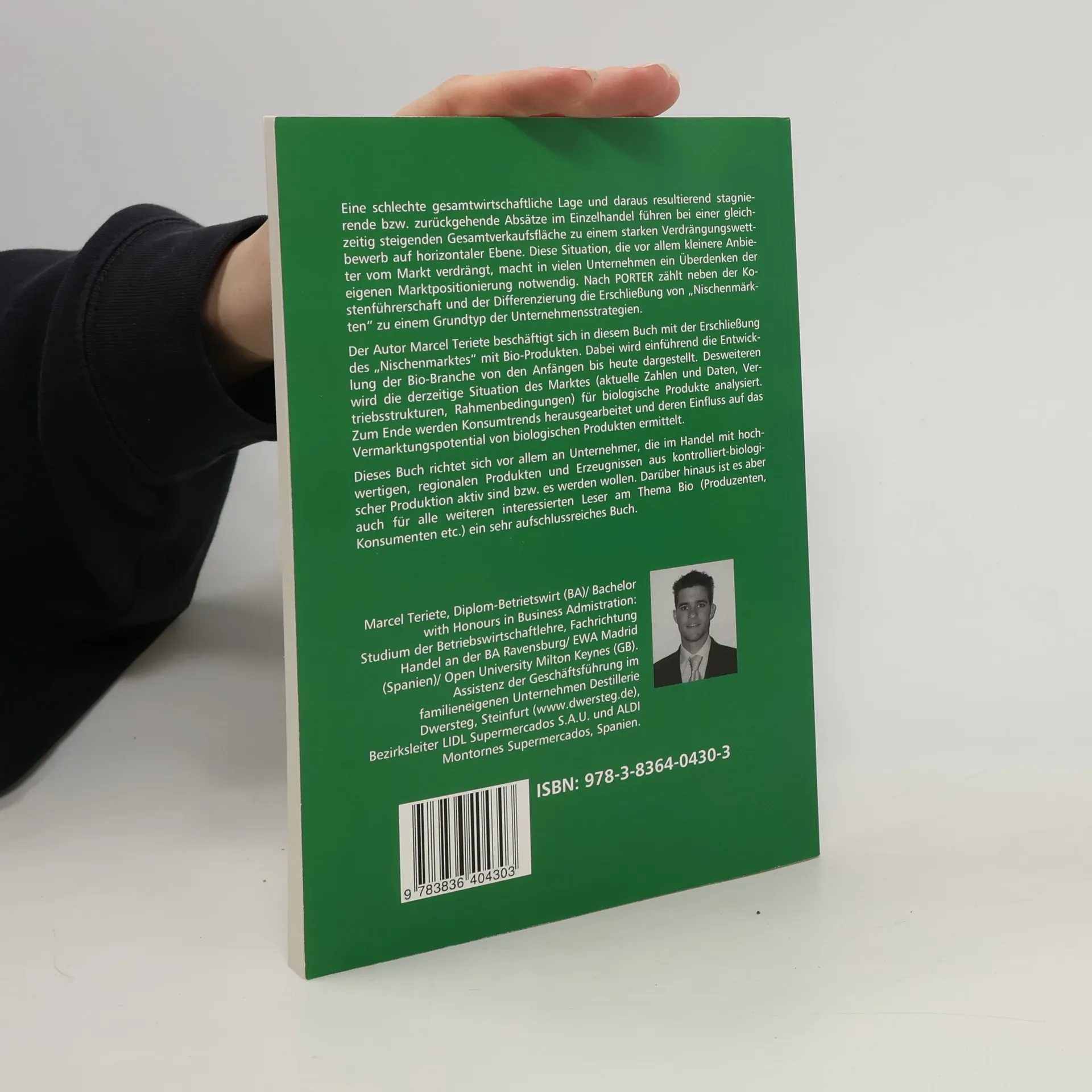 Eine schlechte gesamtwirtschaftliche Lage und daraus resultierend stagnierende bzw. zurückgehende Absätze im Einzelhandel führen bei einer gleichzeitig steigenden Gesamtverkaufsfläche zu einem starken Verdrängungswettbewerb auf horizontaler Ebene. Diese Situation, die vor allem kleinere Anbieter vom Markt verdrängt, macht in vielen Unternehmen ein Überdenken der eigenen Marktpositionierung notwendig. Nach PORTER zählt neben der Kostenführerschaft und der Differenzierung die Erschließung von „Nischenmärkten“ zu einem Grundtyp der Unternehmensstrategien. Der Autor Marcel Teriete beschäftigt sich in diesem Buch mit der Erschließung des „Nischenmarktes“ mit Bio-Produkten. Dabei wird einführend die Entwicklung der Bio-Branche von den Anfängen bis heute dargestellt. Desweiteren wird die derzeitige Situation des Marktes (aktuelle Zahlen und Daten, Vertriebsstrukturen, Rahmenbedingungen) für biologische Produkte analysiert. Zum Ende werden Konsumtrends herausgearbeitet und deren Einfluss auf das Vermarktungspotential von biologischen Produkten ermittelt. Dieses Buch richtet sich vor allem an Unternehmer, die im Handel mit hochwertigen, regionalen Produkten und Erzeugnissen aus kontrolliert-biologischer Produktion aktiv sind bzw. es werden wollen. Darüber hinaus ist es aber auch für alle weiteren interessierten Leser am Thema Bio (Produzenten, Konsumenten etc.) ein sehr aufschlussreiches Buch.