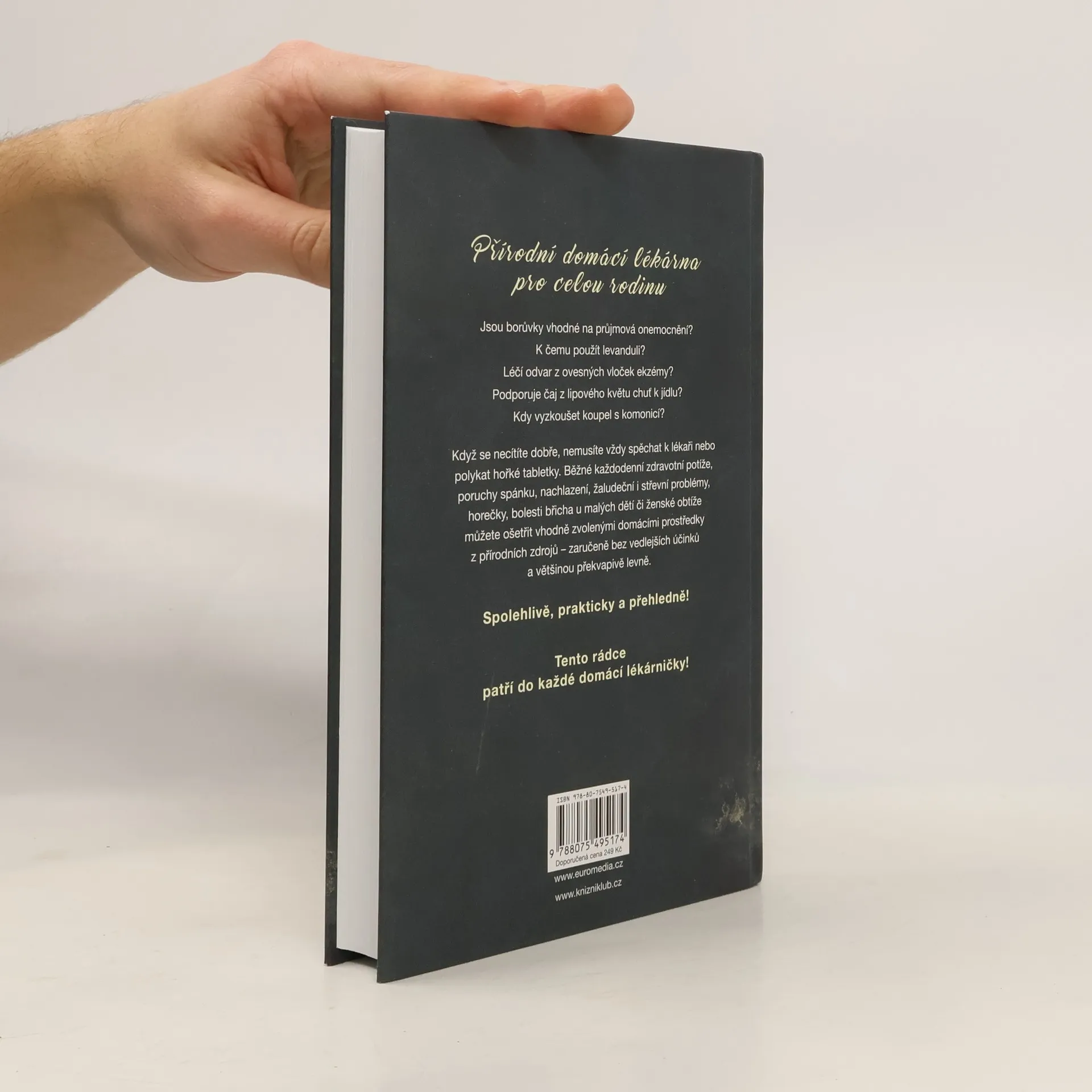 Kniha nabízí všechny potřebné informace o přírodní domácí lékárně a účinné samoléčbě osvědčenými prostředky z přírodních zdrojů. Když se necítíte dobře, nemusíte vždy spěchat k lékaři nebo polykat tabletky. Běžné potíže, jako poruchy spánku, nachlazení, bolest hlavy, nervozita, problémy žaludeční i střevní, horečky aj., můžete ošetřit vhodnými domácími prostředky - bez vedlejších účinků a levně.