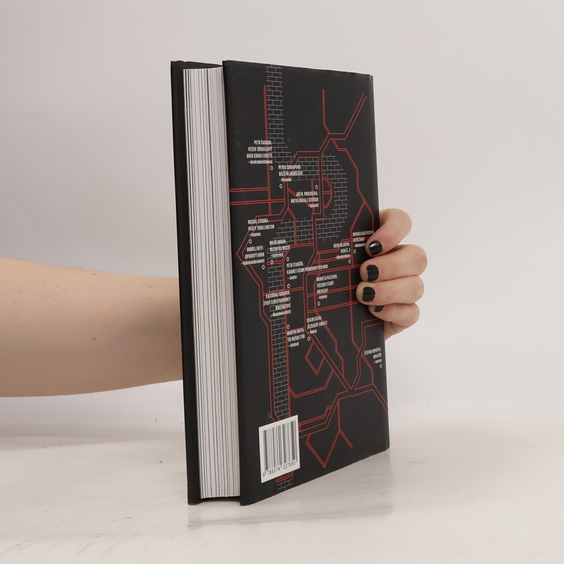Autoři povídek: Cigan, Goffa, Hejdová, Klevisová, Kopřiva, Neff, Procházka, Pilátová, Soukupová, Sýkora, Stančík, Šabach, Tučková, Urban. Kolik tváří můžou mít pražské zločiny, záhady a tajemství? Čtrnáct předních českých autorů přijalo výzvu nabídnout na tuto otázku odpověď a navázat tak na bohatou tradici kriminálních a tajemných příběhů s pražskými náměty. Výsledkem je ojedinělý a stylově pestře laděný soubor, který nabízí setkání se zavedenými jmény české literární scény i budoucími hvězdami a je současně svérazným průvodcem po tradičních i méně známých pražských lokalitách. S Michaelou Klevisovou se vydáme na žižkovské nákladové nádraží, s Milošem Urbanem na Karlův most, v akčních příbězích Štěpána Kopřivy a Martina Goffy navštívíme Hostivař a Vyšehrad, Michal Sýkora se vydává na pražský Pohořelec, Petr Stančík nahlíží do tajemného světa zaniklého židovského ghetta, Petra Soukupová líčí nevysvětlitelné zmizení ve Stromovce, Kateřina Tučková zkoumá temnou minulost starého domu na vltavském nábřeží… Objevný svazek, uspořádaný literárním kritikem Pavlem Mandysem, vychází souběžně v české a americké verzi, kterou newyorské nakladatelství Akashic Books zařadilo do své prestižní řady Noir.