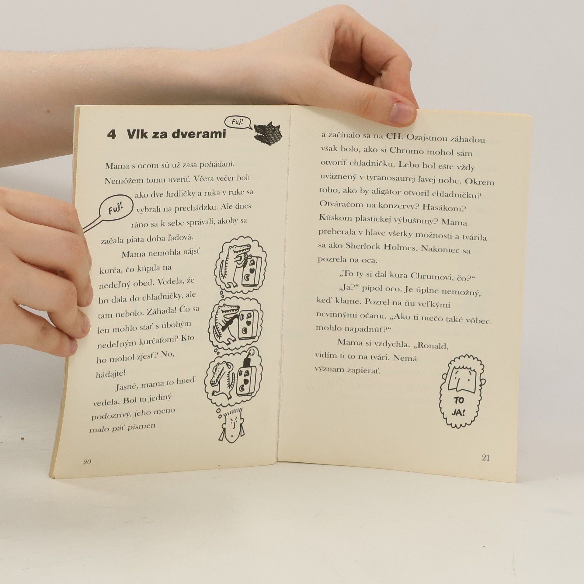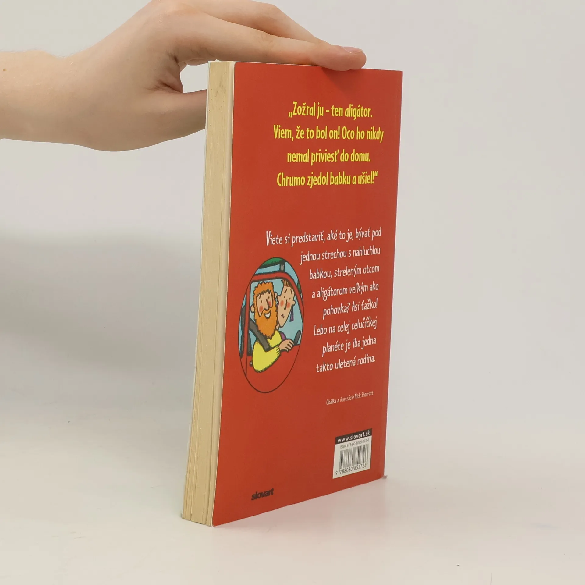 Humorný, ale aj poučný príbeh o tom, aké to je bývať pod jednou strechou s nahluchlou babkou a streleným ocom, ktorý jedného dňa privedie domov opusteného aligátora. Nežerie síce ľudí, ale aj tak... Čo keď zje babku? Ešteže mama má dosť rozumu a povedala ocovi: Dosť! Ja, alebo aligátor! Ste zvedaví, kto zvíťazí?