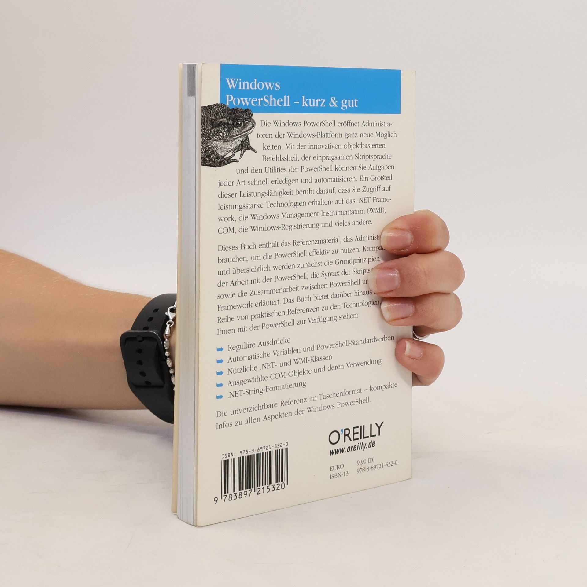 Die Windows PowerShell eröffnet Administratoren der Windows-Plattform ganz neue Möglichkeiten. Mit der innovativen objektbasierten Befehlsshell, der einprägsamen Skriptsprache und den Utilities der PowerShell können Sie Aufgaben jeder Art schnell erledigen und automatisieren. Ein Großteil dieser Leistungsfähigkeit beruht darauf, dass Sie Zugriff auf leistungsstarke Technologien erhalten: auf das. NET Framework, die Windows Management Instrumentation (WMI), COM, die Windows-Registrierung und vieles andere. Dieses Buch enthält das Referenzmaterial, das Administratoren brauchen, um die PowerShell effektiv zu nutzen: Kompakt und übersichtlich werden zunächst die Grundprinzipien der Arbeit mit der PowerShell, die Syntax der Skriptsprache sowie die Zusammenarbeit zwischen PowerShell und. NET Framework erläutert. Das Buch bietet darüber hinaus eine Reihe von praktischen Referenzen zu den Technologien, die Ihnen mit der PowerShell zur Verfügung stehen: * Reguläre Ausdrücke * Automatische Variablen und Standardverben der PowerShell * Nützliche. NET- und WMI-Klassen * Ausgewählte COM-Objekte und deren Verwendung *. NET-String-Formatierung Die unverzichtbare Referenz im Taschenformat - kompakte Infos zu allen Aspekten der Windows PowerShell.