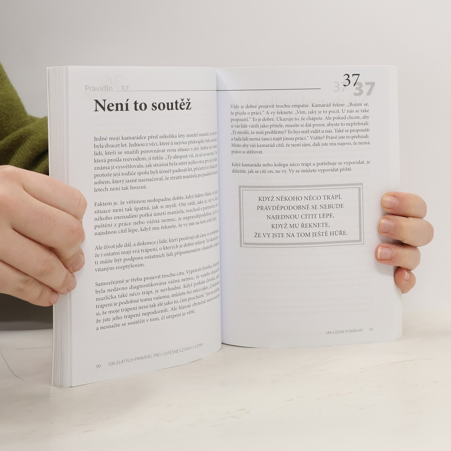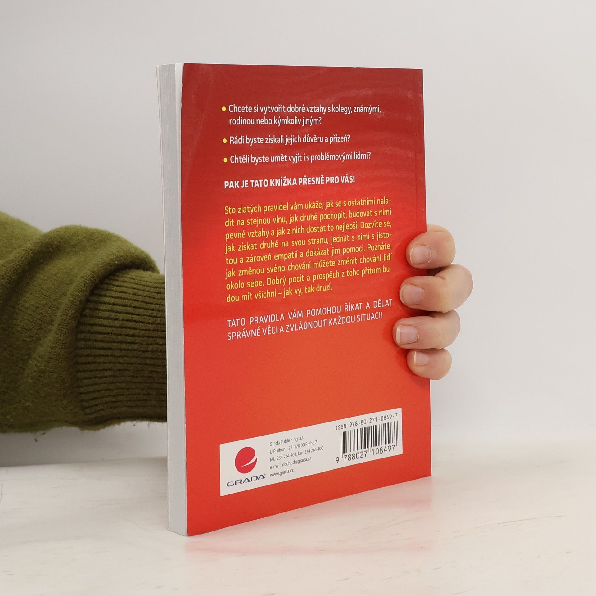 •Chcete si vytvořit dobré vztahy s kolegy, známými, rodinou nebo kýmkoliv jiným? •Rádi byste získali jejich důvěru a přízeň? •Chtěli byste umět vyjít i s problémovými lidmi? Pak je tato knížka přesně pro vás! Sto zlatých pravidel vám ukáže, jak se s ostatními naladit na stejnou vlnu, jak druhé pochopit, budovat s nimi pevné vztahy a jak z nich dostat to nejlepší. Dozvíte se, jak získat druhé na svou stranu, jednat s nimi s jistotou a zároveň empatií a dokázat jim pomoci. Poznáte, jak změnou svého chování můžete změnit chování lidí okolo sebe. Dobrý pocit a prospěch z toho přitom budou mít všichni – jak vy, tak druzí. Tato pravidla vám pomohou říkat a dělat správné věci a zvládnout každou situaci!