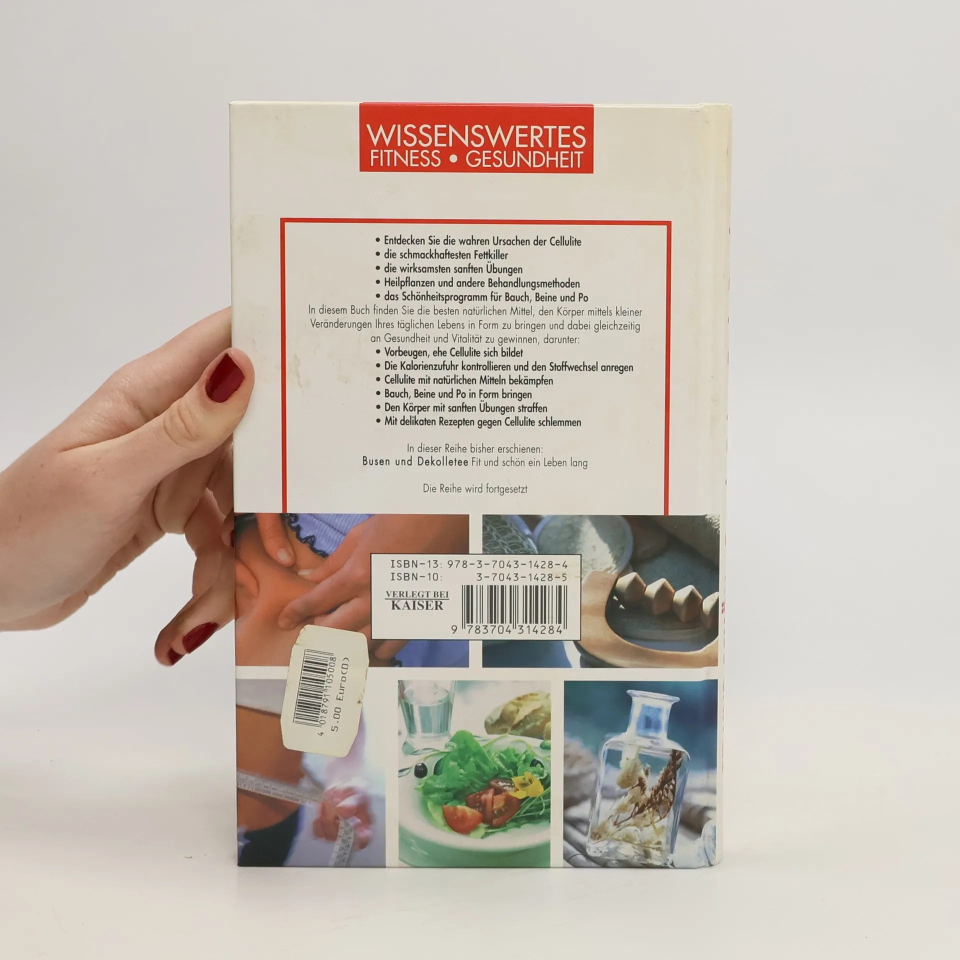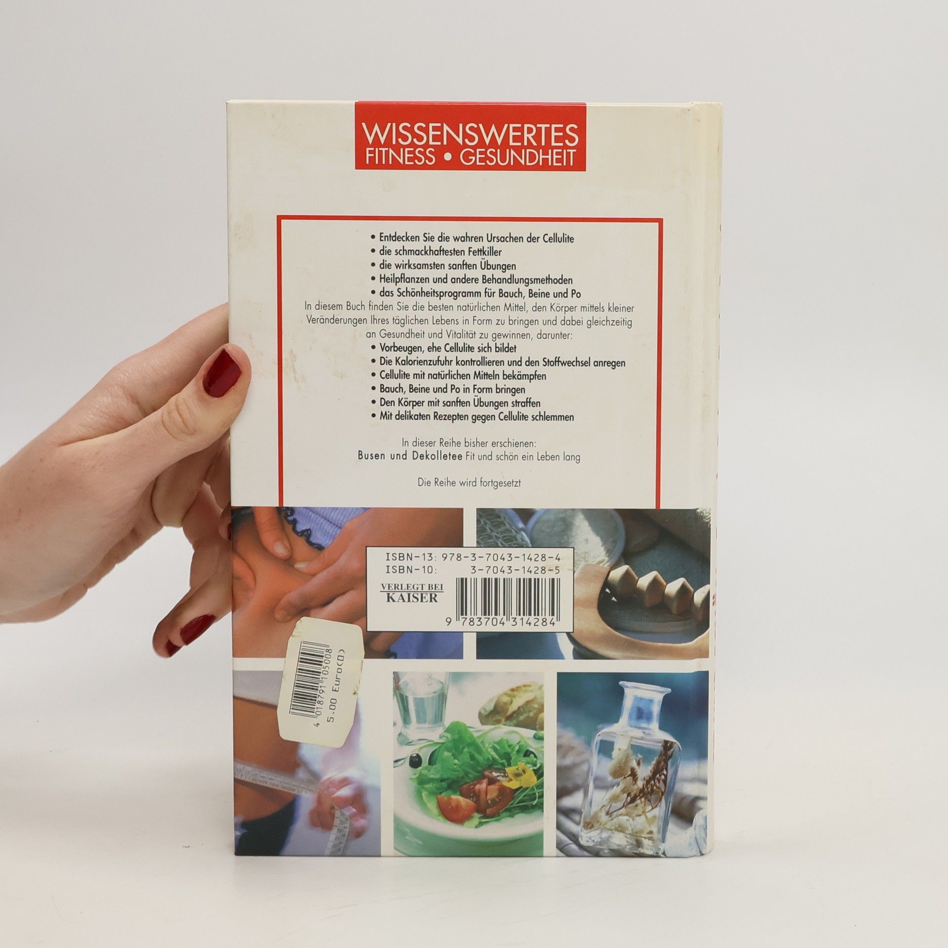 -Entdecken Sie die wahren Ursachen der Cellulite -die schmackhaftesten Fettkiller -die wirksamsten sanften Übungen -Heilpflanzen und andere Behandlungsmethoden -das Schönheitsprogramm für Bauch, Beine und Po In diesem Buch finden Sie die besten natürlichen Mittel, den Körper mittels kleiner Veränderungen Ihres täglichen Lebens in Form zu bringen und dabei gleichzeitig an Gesundheit und Vitali-tät zu gewinnen, darunter: -Vorbeugen ehe Cellulite sich bildet -die Kalorienzufuhr kontrollieren und den Stoffwechsel anregen -Cellulite mit natürlichen Mitteln bekämpfen -Bauch, Beine und Po in Form bringen -den Körper mit sanften Übungen straffen -mit delikaten Rezepten gegen Cellulite schlemmen