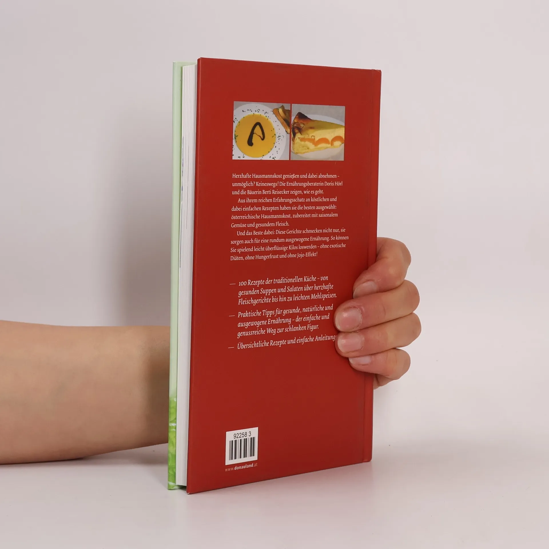 DER EINFACHE UND GENUSSREICHE WEG ZUR SCHLANKEN FIGUR! Herzhafte Hausmannskost genießen und dabei abnehmen - unmöglich? Keineswegs! Die Ernährungsberaterin Doris Hörl und die Bäuerin Berti Reisecker zeigen, wie es geht. Aus ihrem Erfahrungsschatz an köstlichen und einfachen Rezepten haben sie die besten ausgewählt: österreichische Hausmannskost, zubereitet mit saisonalem Gemüse und gesundem Fleisch. Diese Gerichte schmecken nicht nur, sie sorgen auch für eine ausgewogene Ernährung. So können Sie überflüssige Kilos loswerden - ohne exotische Diäten, ohne Hungerfrust und ohne Jojo-Effekt! 100 Rezepte der traditionellen Küche - von gesunden Suppen und Salaten über herzhafte Fleischgerichte bis hin zu leichten Mehlspeisen - bodenständig und abwechslungsreich durch saisonale und regionale Zutaten. Praktische Tipps für gesunde, natürliche Ernährung, übersichtliche Rezepte und einfache Anleitungen machen das Abnehmen leicht. Einige psychologische Tricks und Wissenswertes über Ess-Typen helfen zusätzlich. „Gesundes Essen“ heißt, bewusst und ursprünglich zu kochen! Freuen Sie sich über gesunde Hausmannskost - durch die richtige Zubereitung können Sie Ihr Übergewicht abbauen und Ihr Wohlfühlgewicht halten. Frisch zubereitete Speisen sind reich an Vitaminen und Mineralstoffen. Dieses Buch führt Sie Schritt für Schritt zu neuen Essgewohnheiten!