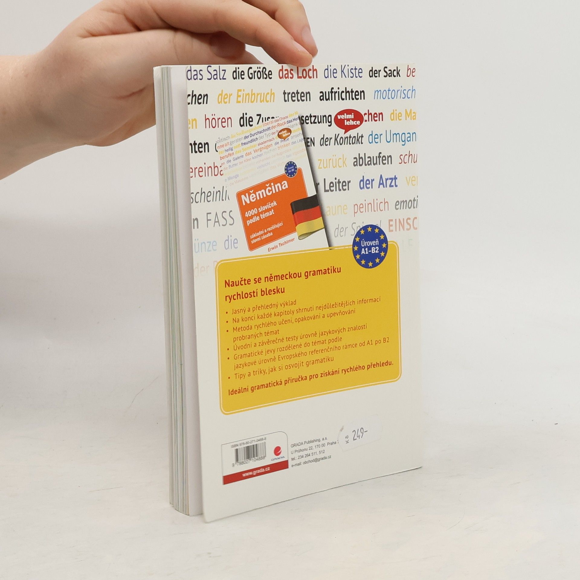 Přehledně a logicky seřazené gramatické jevy, které se můžete učit, nebo jen opakovat, shrnují vše, co pro běžnou komunikaci v němčině potřebujete. Vypracováním úvodního a závěrečného testu zjistíte, jakých pokroků jste dosáhli. Na konci každé části je rekapitulace učiva. Kniha je vhodná pro úroveň znalosti jazyka A1-B2 a každá část textu má označení, které úrovně se týká. Na webu Grada.cz si u této knihy můžete stáhnout soubor s doplňkovými cvičeními.