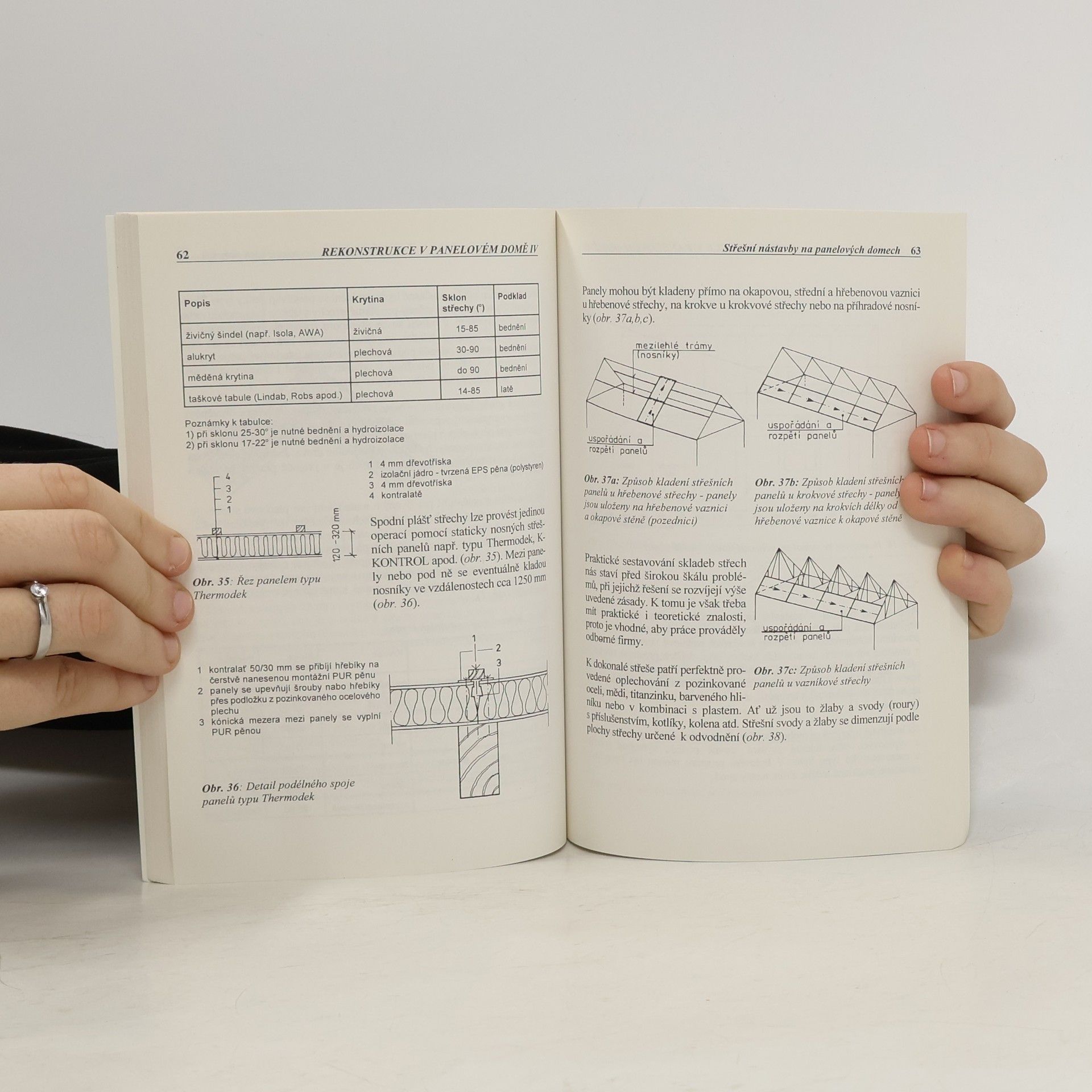 Rekonstrukce v panelovém domě - střešní nástavby, zateplení. Publikace pojednává o úpravách panelových domů v širších souvislostech. Zabývá se spodní stavbou panelových objektů, jejich údržbou a opravami a poradí, jak se rozhodovat při nutných opravách plochých střech. Jako alternativu k vynuceným opravám nabízí budování střešních nástaveb. Důležitá část knihy se týká vzhledu panelových domů a popisuje dodatečné architektonické úpravy fasád a štítů, které zpravidla zahrnují i zateplování. 1. vydání.