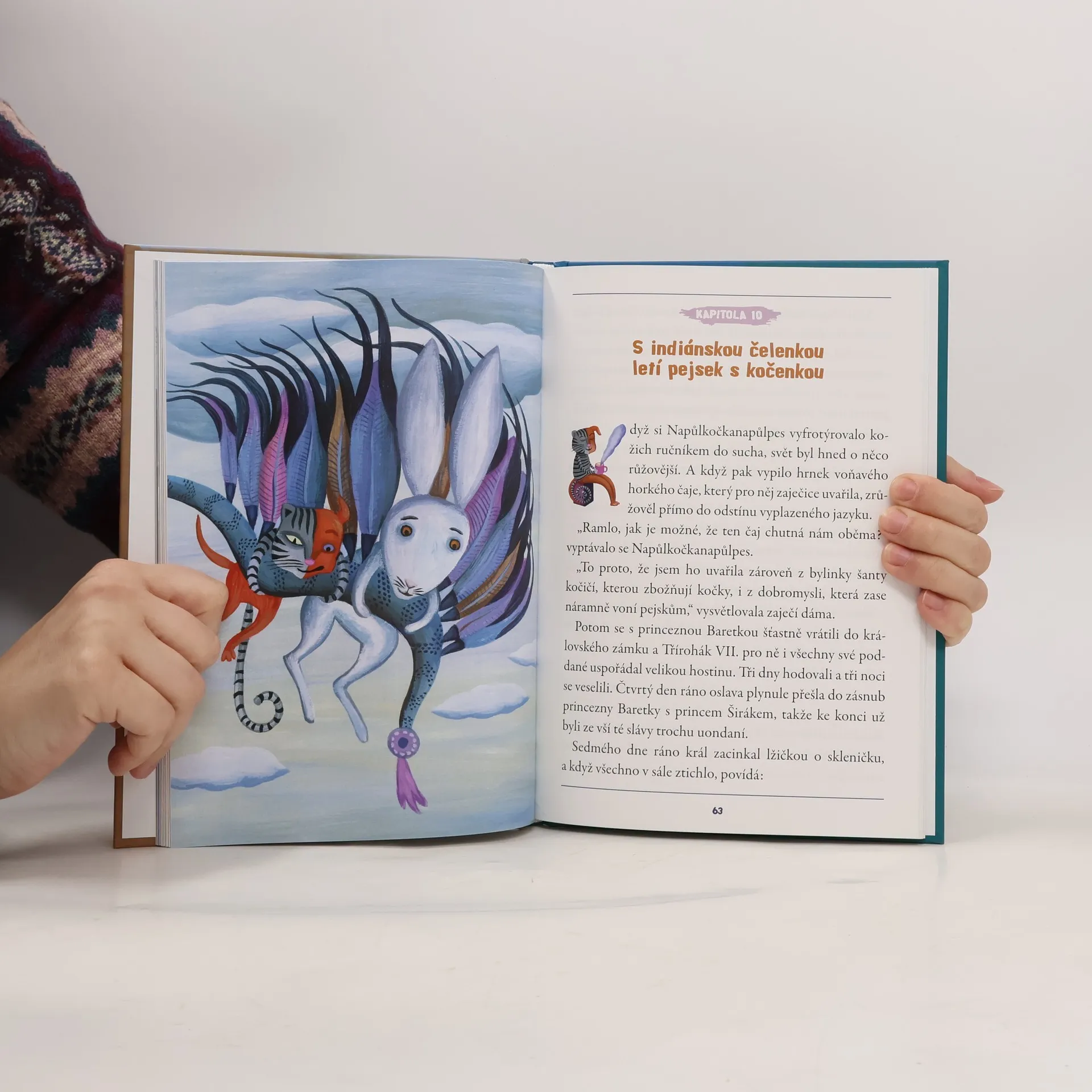 Kožíšek má napůl mourovatý, napůl hnědorezavý. Přední tlapky kočičí a zadní psí. Na zadečku dva ocásky a na hlavě jedno ucho vztyčené a druhé visící. Kdo je to? Přece Napůlkočkanapůlpes - netradiční hrdina pohádky, která pobaví děti i dospělé. Vydejte se s Napůlkočkounapůlpsem a zaječicí Ramlou na cestu za kouzelníkem Abrakadrnožkou a zažijte jelení svatbu nebo útěk před vlky. Zvládnete rozluštit hádanku Sfingy? Potkáte i permoníky a létající klobouky a mnoho dalších tvorů. Naučí se kočka se psem respektu a spolupráci? Vrátí se jim původní podoba? Začtěte se a zjistíte sami.