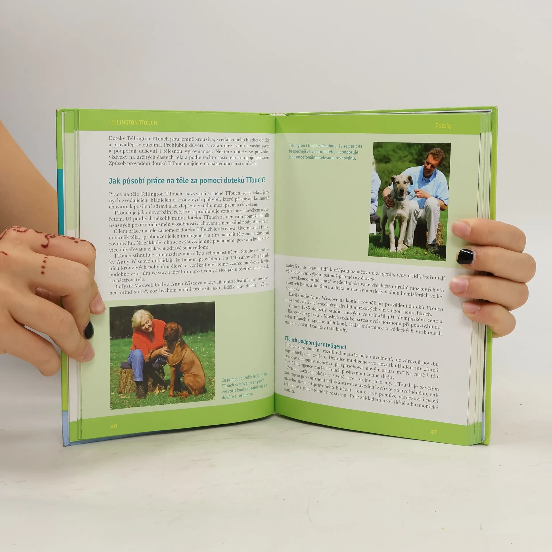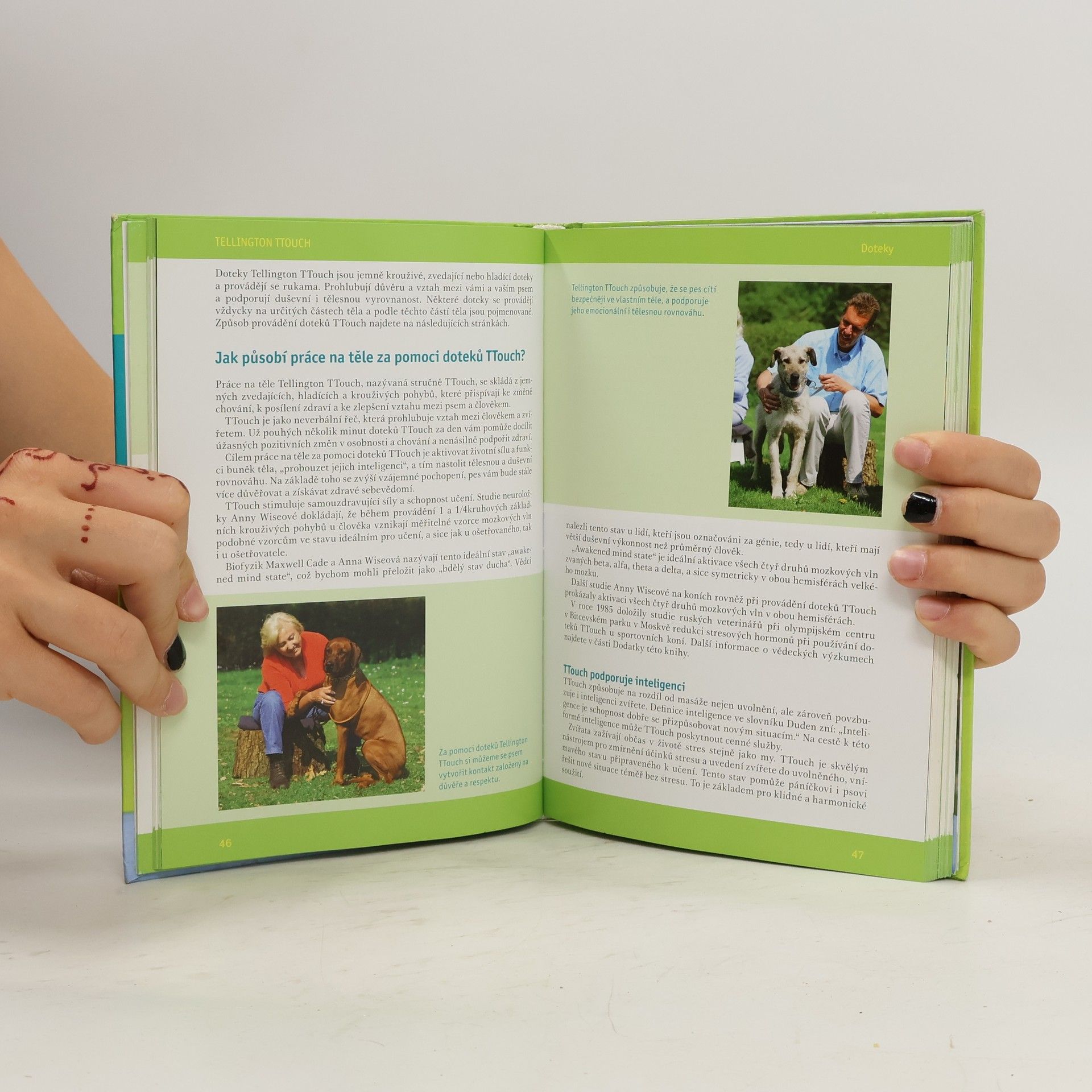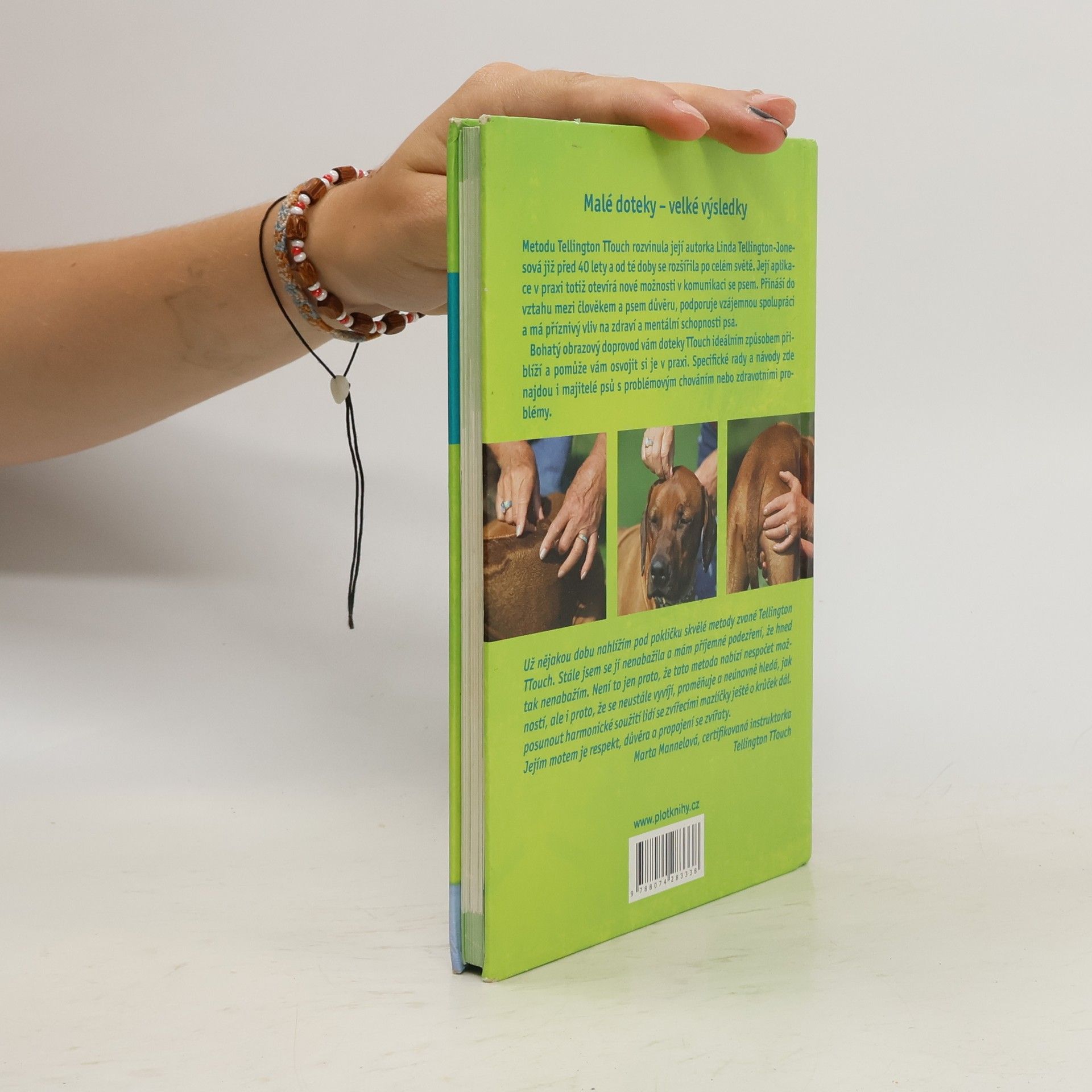 „Malé doteky – velké výsledky.“ Metodu Tellington TTouch rozvinula její autorka Linda Tellington-Jones již před 40 lety a od té doby se rozšířila po celém světě. Její aplikace v praxi totiž otevírá nové možnosti v komunikaci se psem. Tato metoda přináší do vztahu mezi člověkem a psem důvěru, podporuje vzájemnou spolupráci a má příznivý vliv na zdraví a mentální schopnosti psa. Bohatý obrazový doprovod vám doteky TTouch ideální způsobem přiblíží a pomůže vám osvojit si je v praxi. Rady a návody zde najdou i majitelé psů s problémovým chováním nebo zdravotními problémy.