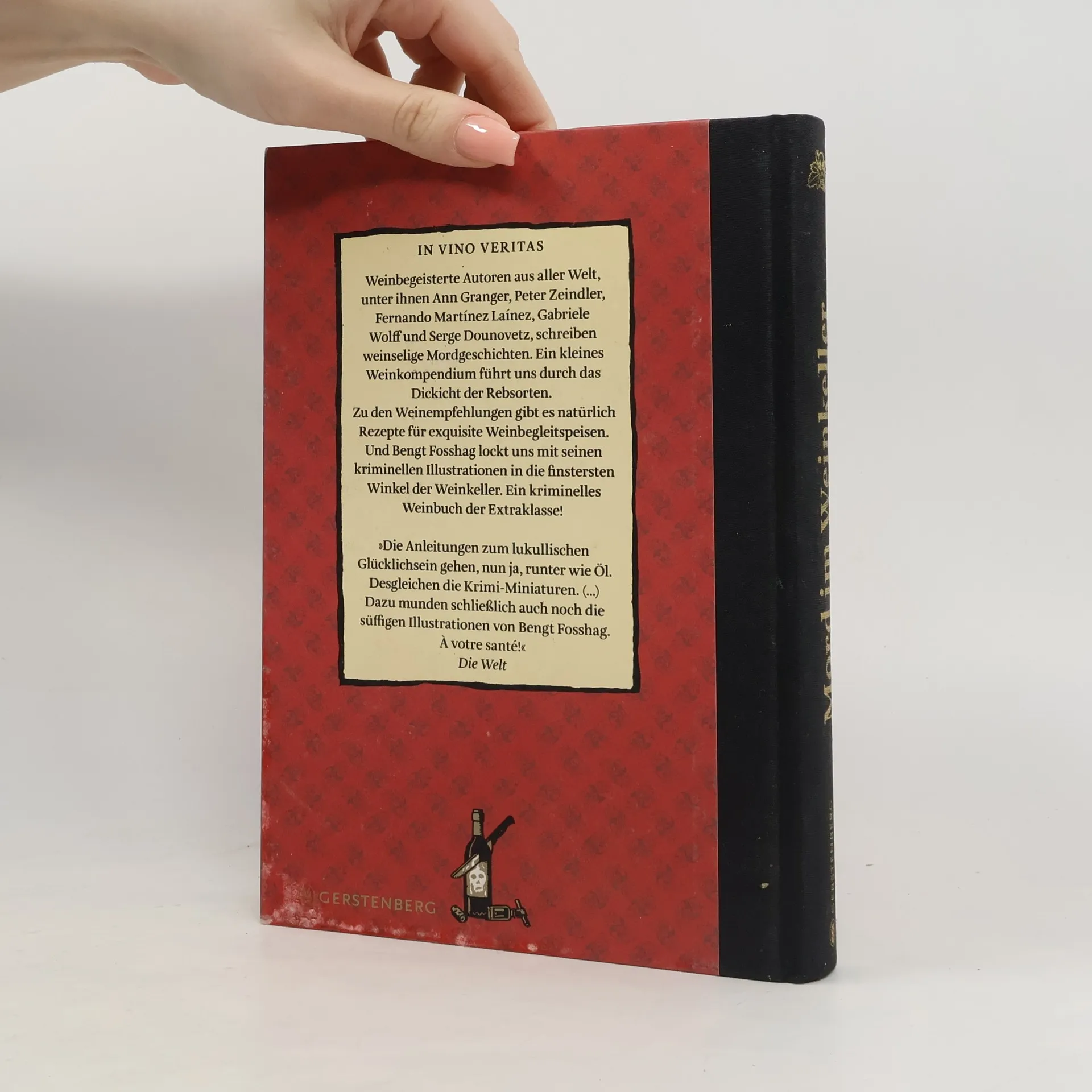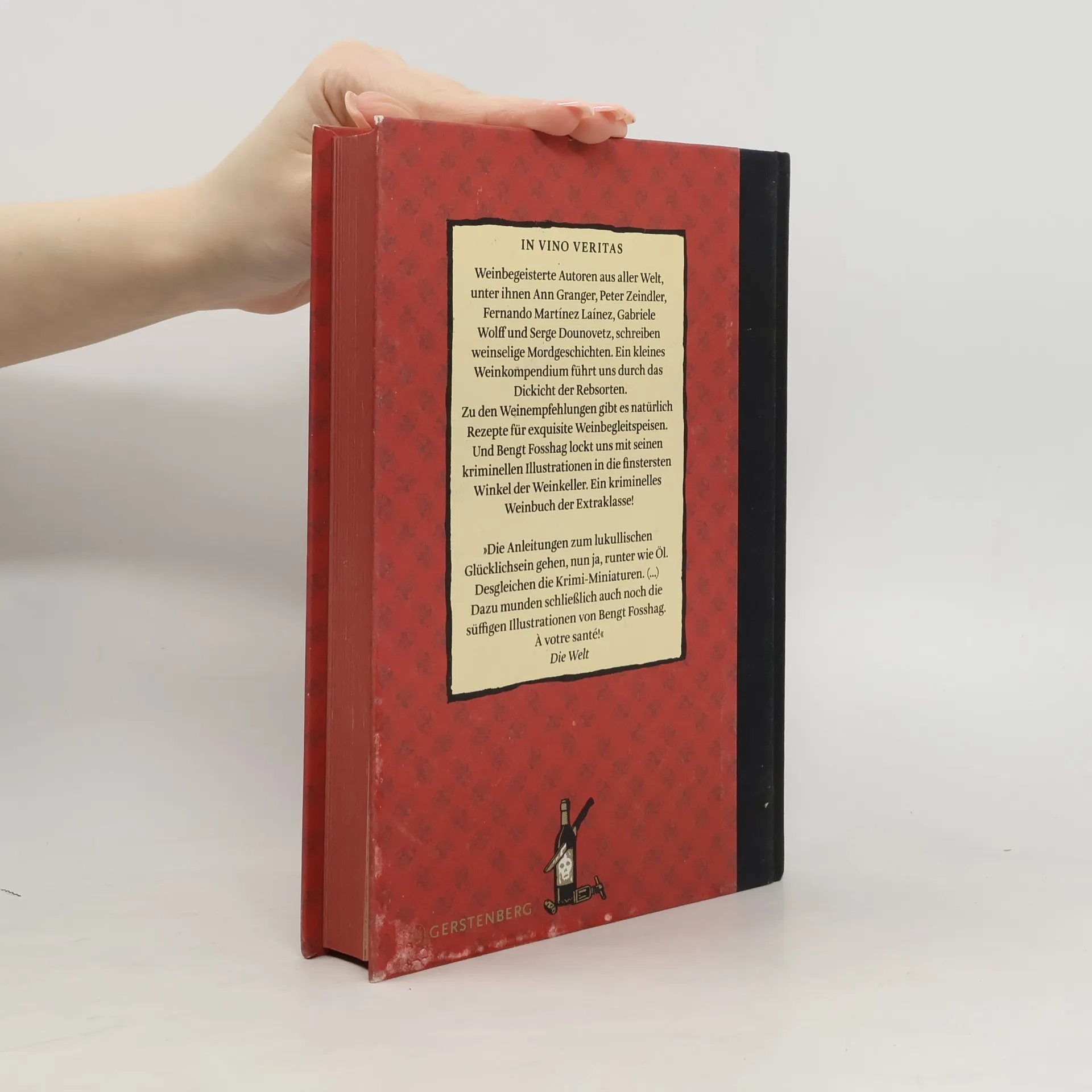 Wein, Weib und Mord. Weinbegeisterte Autoren schreiben weinselige Mordgeschichten, ein kleines Weinkompendium führt uns in die Geheimnisse des Weins ein, und der Illustrator Bengt Fosshag nimmt uns mit in die dunkelsten Weinkeller. Ein kriminelles Weinbuch der Extraklasse - jetzt in einer bibliophilen Neuausgabe als Halbleinenband mit Goldprägung und rotem Farbschnitt! Mit Kriminalgeschichten von Ann Granger, Peter Zeindler, Fernando Martínez Laínez, Gabriele Wolff, Serge Dounovetz u. v. a. und vielen Rezepten. »Die Anleitungen zum lukullischen Glücklichsein gehen, nun ja, runter wie Öl. Desgleichen die Krimi-Miniaturen. (...) Dazu munden schließlich auch noch die süffigen Illustrationen von Bengt Fosshag. À votre santé!« Die Welt Auszeichnungen: Secondbest Wine Literature Book (Worldwide) Gourmand World Cookbook Award 2007