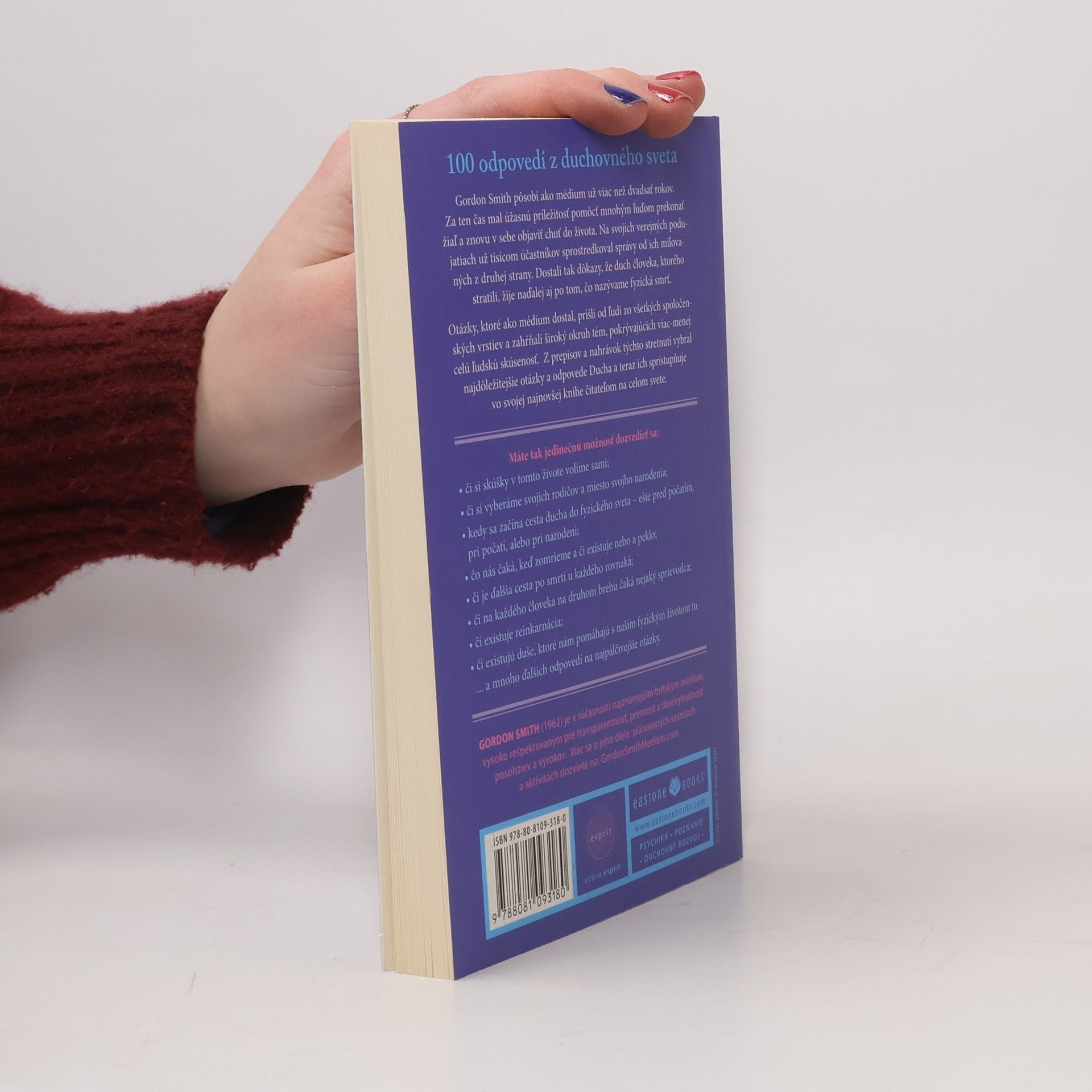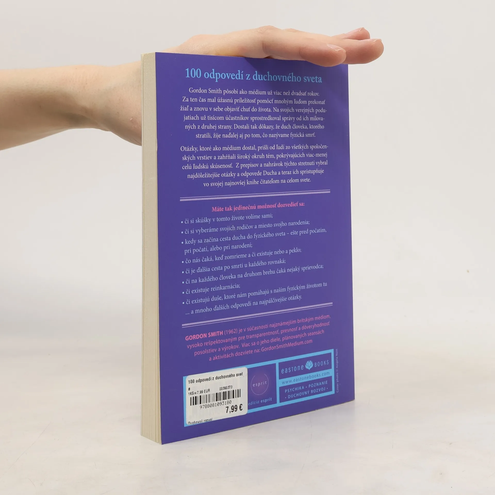 Gordon Smith pôsobí ako médium už viac než dvadsať rokov. Za ten čas mal úžasnú príležitosť pomôcť mnohým ľuďom prekonať žiaľ a znovu v sebe objaviť chuť do života. Na svojich verejných podujatiach už tisícom účastníkov sprostredkoval správy od ich milovaných z druhej strany. Dostali tak dôkazy, že duch človeka, ktorého stratili, žije naďalej aj po tom, čo nazývame fyzická smrť. Otázky, ktoré ako médium dostal, prišli od ľudí zo všetkých spoločenských vrstiev a zahŕňali široký okruh tém, pokrývajúcich viac-menej celú ľudskú skúsenosť. Z prepisov a nahrávok týchto stretnutí vybral najdôležitejšie otázky a odpovede Ducha a teraz ich sprístupňuje vo svojej najnovšej knihe čitateľom na celom svete.
