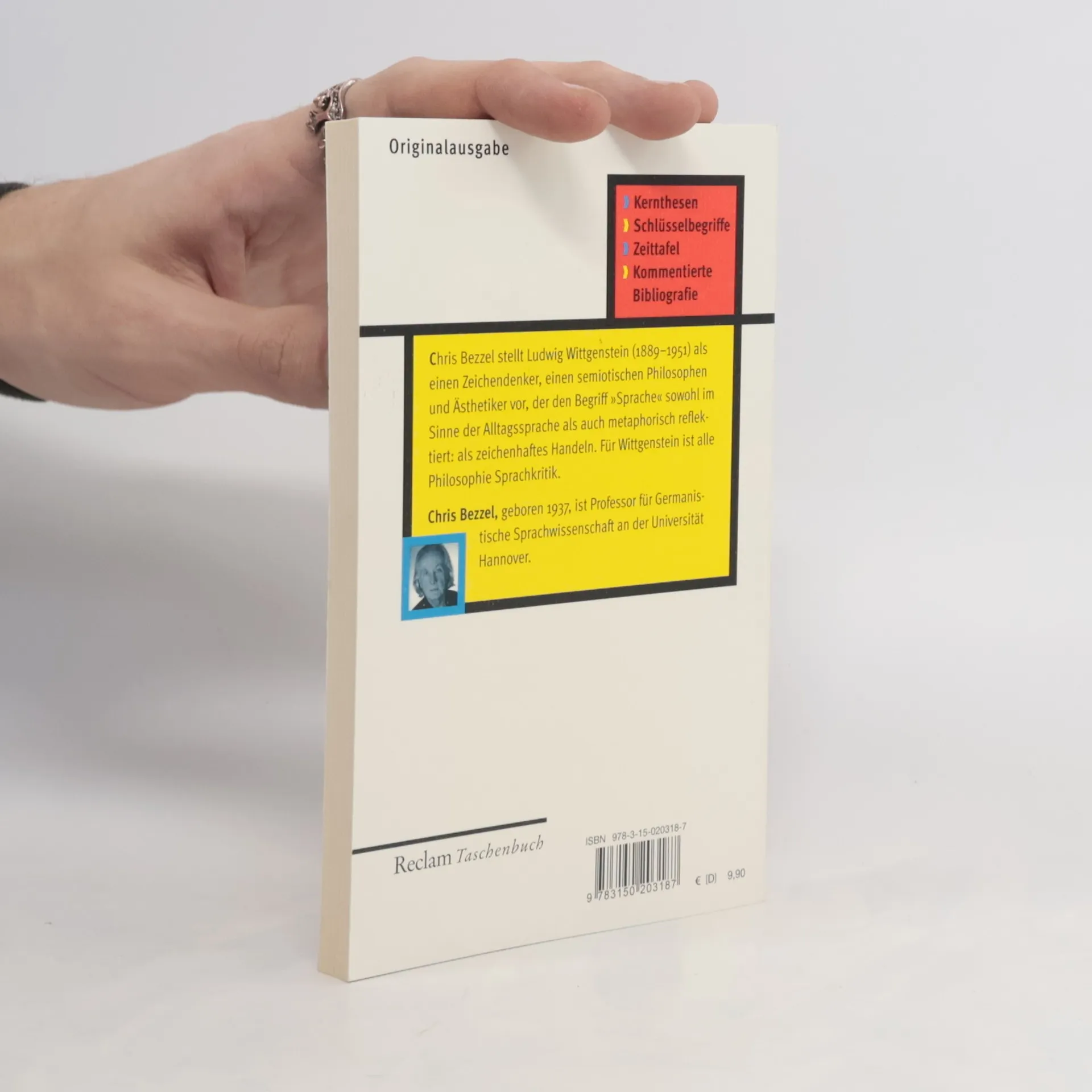 Diese Einführung stellt Ludwig Wittgenstein als einen Zeichendenker, einen semiotischen Philosophen und Ästhetiker vor, der den Begriff „Sprache“ sowohl im Sinne der Alltagssprache als auch metaphorisch reflektiert: als zeichenhaftes Handeln. Für Wittgenstein ist alle Philosophie Sprachkritik.