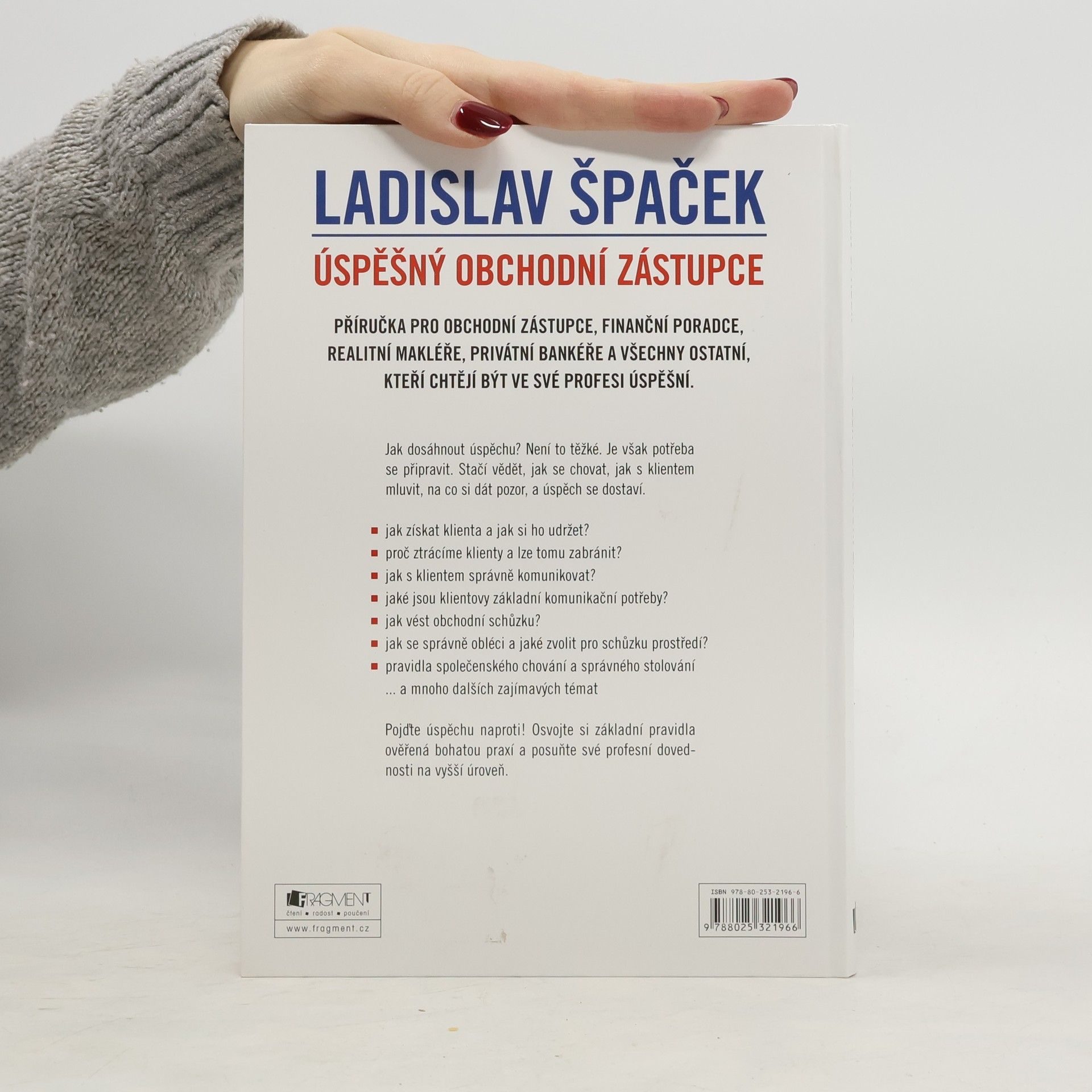 Příručka pro obchodní zástupce, finanční poradce, realitní makléře, privátní bankéře a všechny ostatní, kteří chtějí být ve své profesi úspěšní. Jak dosáhnout úspěchu? Není to těžké. Je však potřeba se připravit. Stačí vědět jak se chovat, jak s klientem mluvit, na co si dát pozor a úspěch se dostaví. • jak získat klienta a jak si ho udržet? • proč ztrácíme klienty a lze tomu zabránit? • jak s klientem správně komunikovat? • jaké jsou klientovy základní komunikační potřeby? • jak vést obchodní schůzku? • jak se správně obléci a jaké zvolit pro schůzku prostředí? • pravidla společenského chování a správného stolování .. a mnoho dalších zajímavých témat