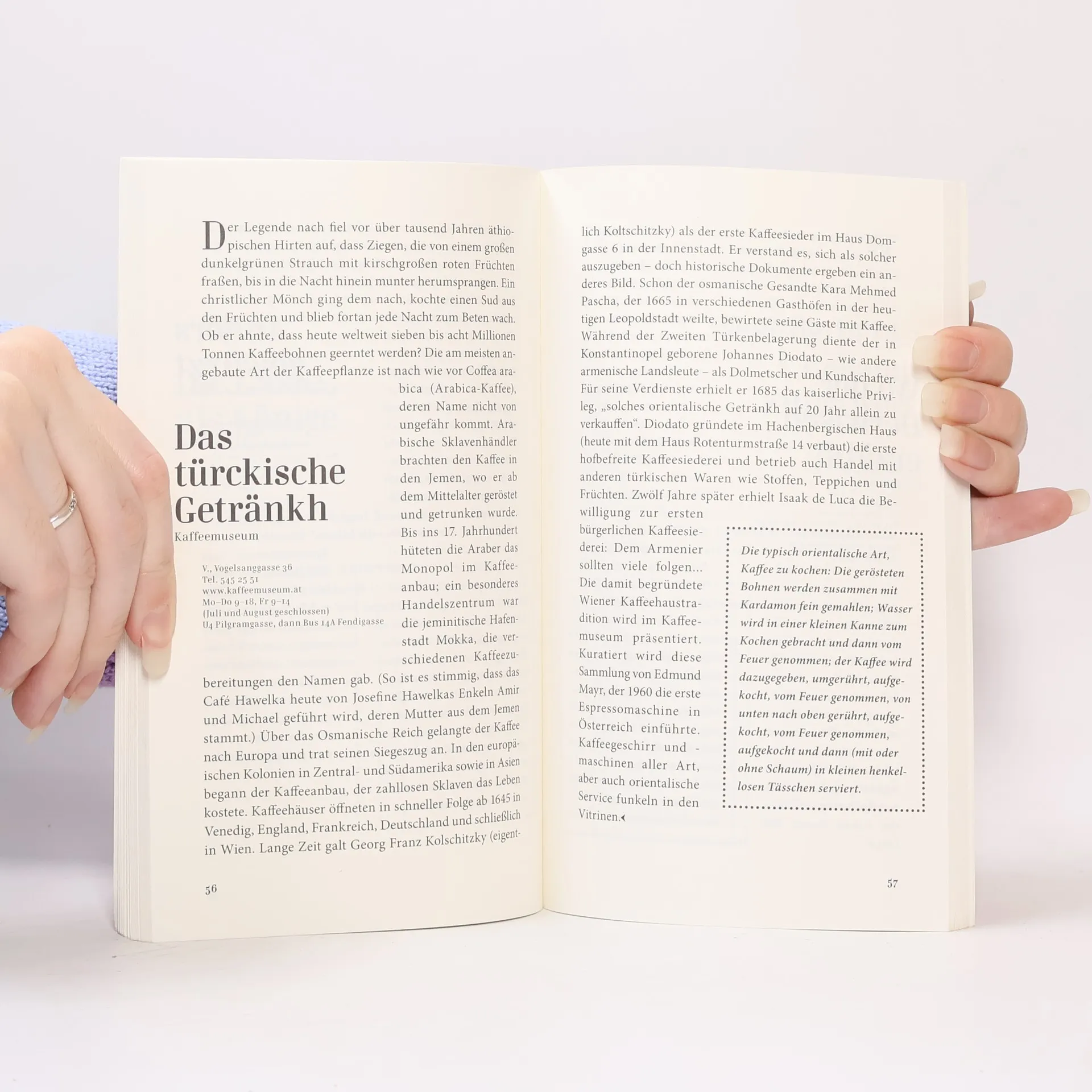 Dass Wien eine der bekanntesten Stationen des Orient-Express’ war, ist kein Zufall. Das Tor zum Osten öffnete sich Einflüssen aus dem gesamten Orient. Viel früher schon fuhren auf der Donau Schiffe, die mit Waren aus dem Orient handelten und diese in Wien am Salzgries feilboten. Heute prägen ägyptische, persische und marokkanische Cafés und Restaurants genauso das Stadtbild wie Moscheen und koptische Kirchen. Einen Hauch von Orient findet man aber auch im Wiener Glasmuseum, im MAK oder im Hofmobiliendepot, um nur einige Orte zu nennen. Der Geschichtenerzähler Kayed versetzt den Leser dieser wienfacette in ferne Länder und an märchenhafte Orte – und das mitten in Wien.