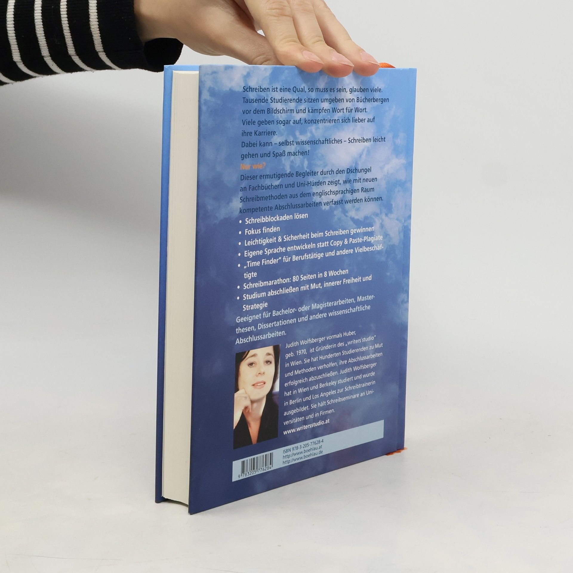 In diesem Buch geht es um MUT. Und um die innere FREIHEIT und die pragmatischen STRATEGIEN, die es neben dem Mut noch braucht, um eine gute wissenschaftliche Abschlussarbeit zu schreiben und den Schreibprozess als produktiv und spannend zu erleben. „Frei geschrieben“ heißt nicht nur selbst geschrieben, es heißt auch durch Schreiben Potenziale freizusetzen und dadurch frei zu werden für die nächsten Schritte im Leben, nachdem man sich von der Uni „freigeschrieben“ hat. • Schreibblockaden lösen • Fokus finden • Leichtigkeit & Sicherheit beim Schreiben gewinnen • Eigene Sprache entwickeln statt Copy & Paste-Plagiate • „Time Finder“ für Vielbeschäftigte • Schreibmarathon: 80 Seiten in 8 Wochen • Studium abschließen mit Strategie • Geeignet für alle wissenschaftlichen Abschlussarbeiten. Judith Wolfsberger vormals Huber, geb. 1970, ist Gründerin des „writers´studio“. Sie hat Hunderten Studierenden zu Mut & Methoden verholfen, ihre Abschlussarbeiten erfolgreich abzuschließen. Judith Wolfsberger hat in Wien und Berkeley studiert und wurde in Berlin und Los Angeles zur Schreibtrainerin ausgebildet. Sie hält Schreibseminare an Universitäten und in Firmen.