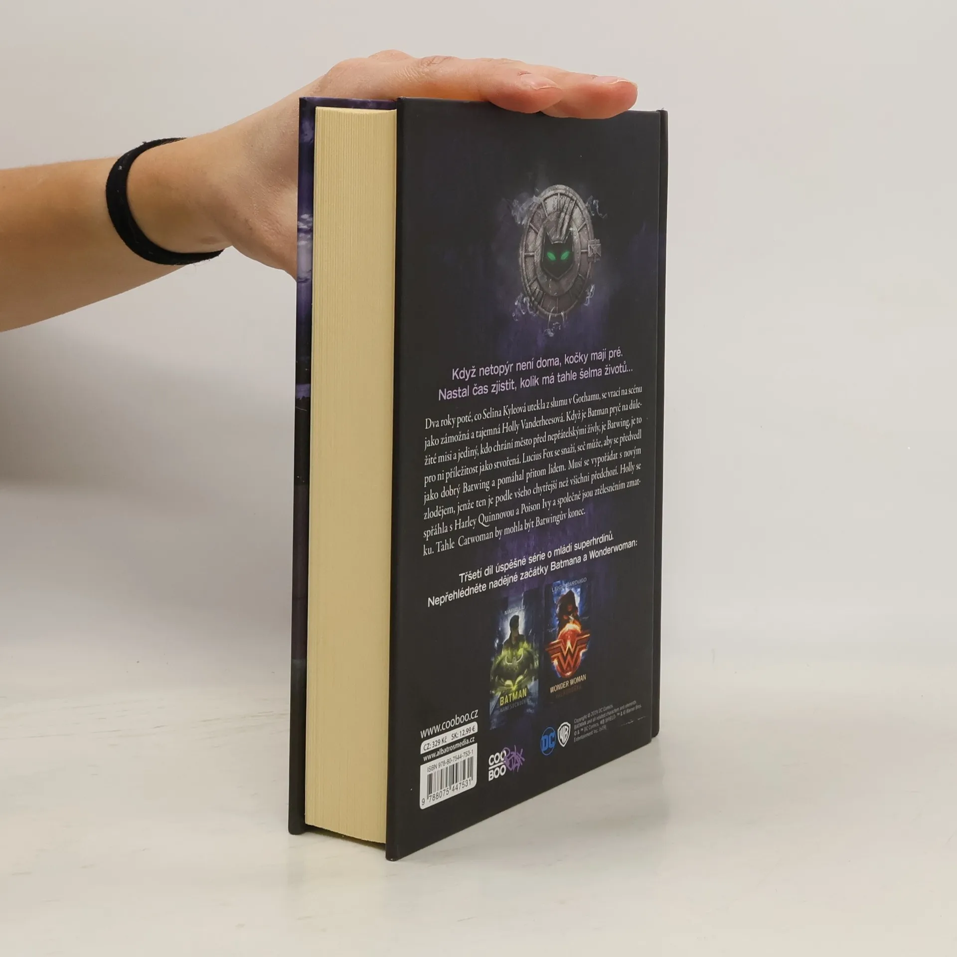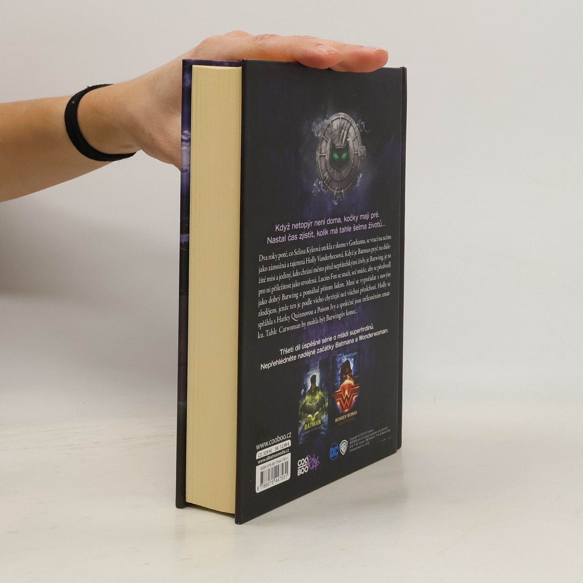 Po Wonder Woman a Batmanovi přichází třetí díl úspěšné série o mládí superhrdinů. Kočičí žena z pera bestsellerové Sarah J. Maasové. “ Je čas zjistit, kolik životů tahle kočka vlastně má. Selina Kyleová se po dvou letech vrací do Gothamu, ovšem tentokrát jako Catwoman. Hraje nebezpečnou hru na kočku a myš, domlouvá zvláštní spojenectví, v noci se zaplétá s Batwingem a ve dne s pekelně krásným sousedem Luciusem Foxem. Přestože si myslí, že své minulosti unikla, šeredně se mýlí. Zvládne obětovat to, co je jejímu srdci nejbližší?