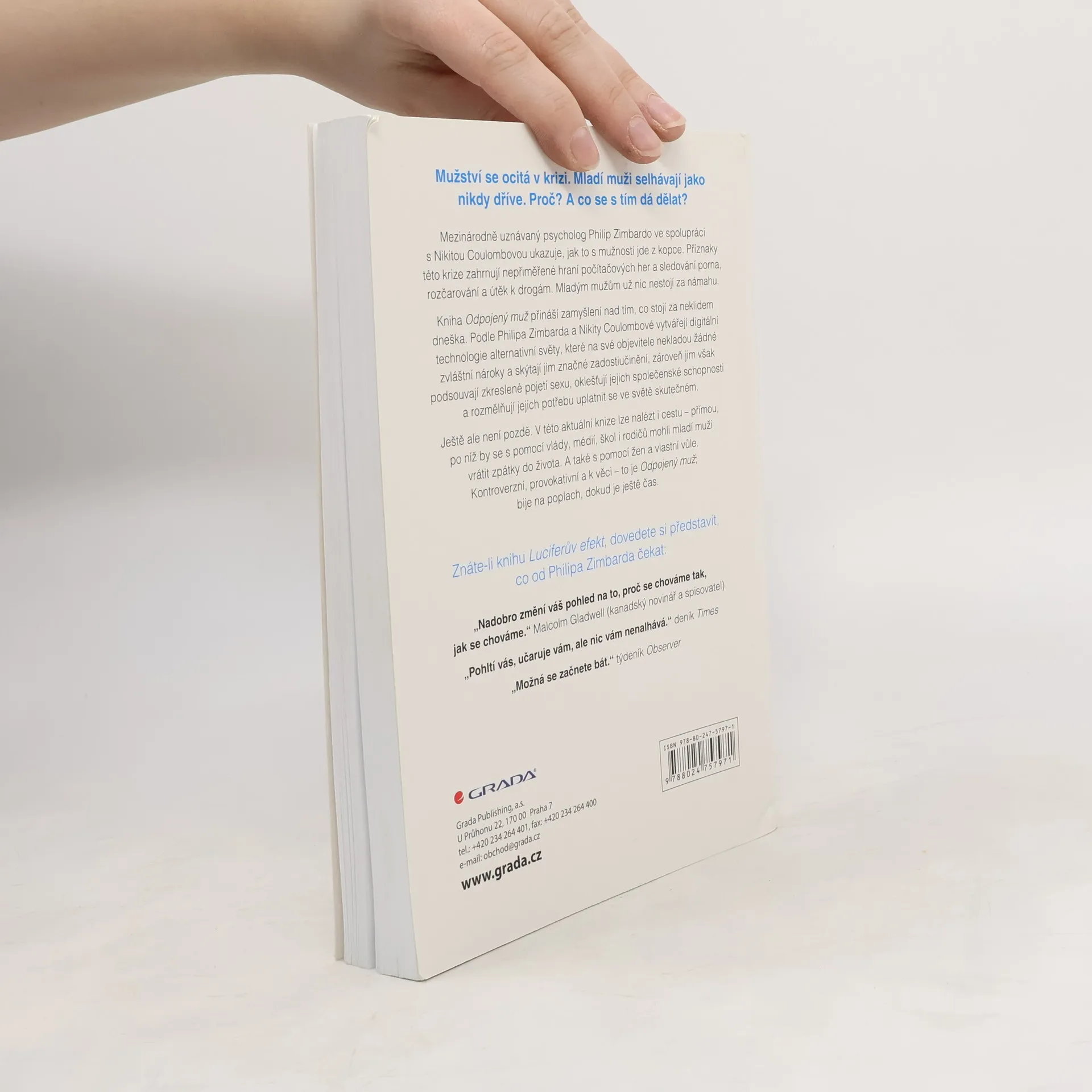 Jak technologie připravuje muže o mužství a co s tím Jak se mají mladí muži v dnešním světě? Mezinárodně uznávaný psycholog Philip Zimbardo ve spolupráci s kolegyní Nikitou Coulombovou ukazují, jak se mužnost ocitá v krizi. Upozorňují na zoufalou neschopnost současných mladíků dospět a odolat nástrahám virtuální reality. Alarmující apel vzbudil celosvětový zájem odborníků i veřejnosti.