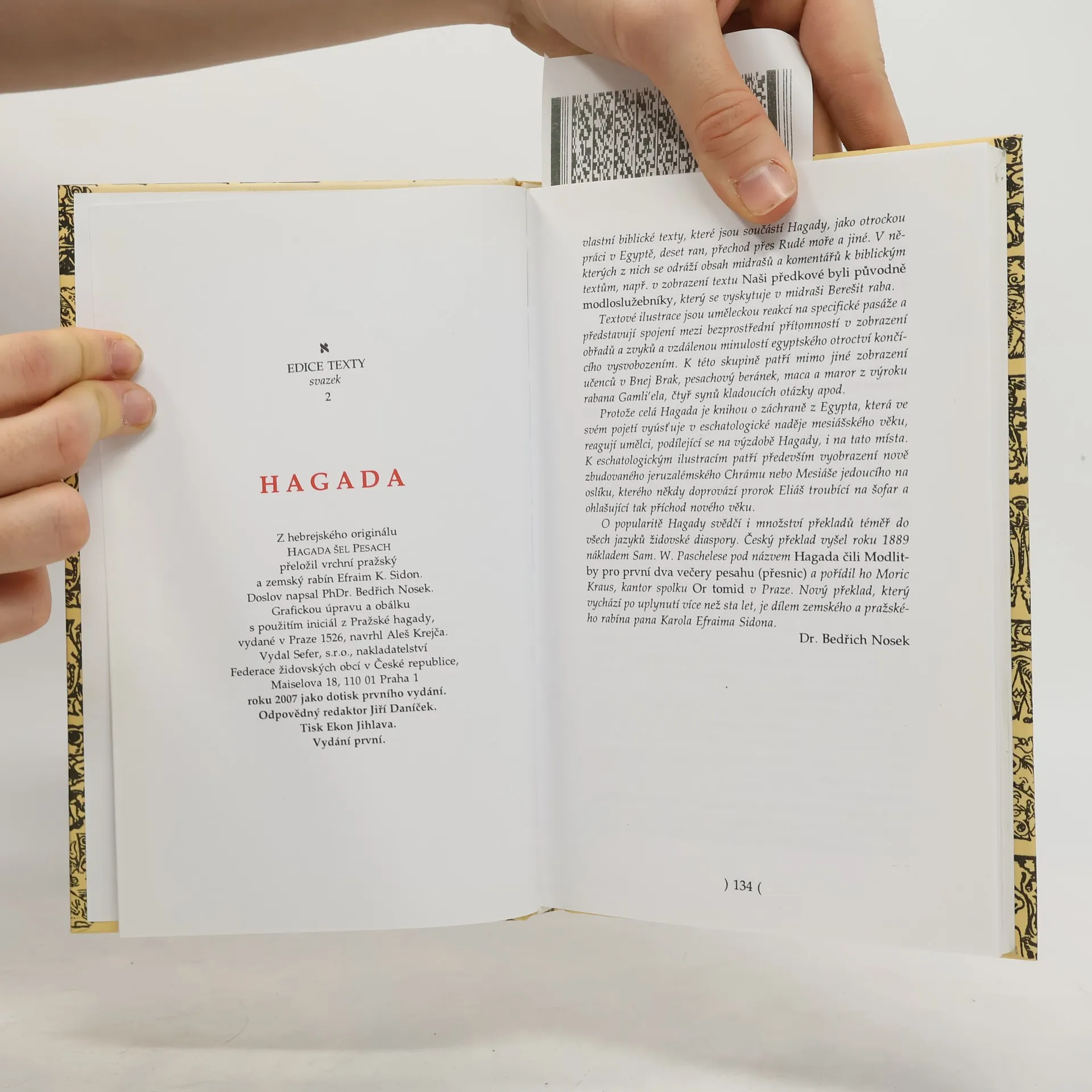 Česko-hebrejské vydání tradičního vyprávění o exodu Židů z Egypta. Psáno zleva doprava. Z hebrejštiny přeložil Efraim K. Sidon. Doslov B. Nosek.