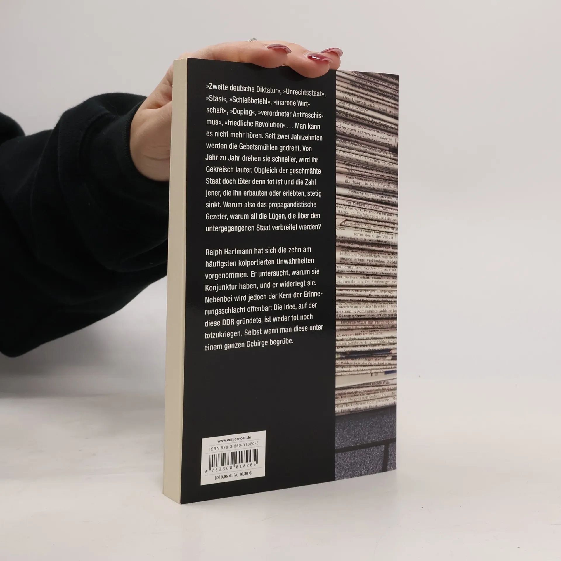 Seit 1990 gehören zum Kanon derer, die die DDR noch nach ihrem Tode bekämpfen, zehn Thesen; sie werden unablässig wiedergekäut: zwei Diktaturen in Deutschland, Stasi-Terror, verordneter Antifaschismus, marode Wirtschaft, drohender Staatsbankrott, Alleinschuld an der Mauer, Erziehungsdiktatur, Staatsdoping, friedliche Revolution, undankbare Ostdeutsche. Ralph Hartmann nimmt sich diese Parolen vor und fragt nach ihrem Kern.