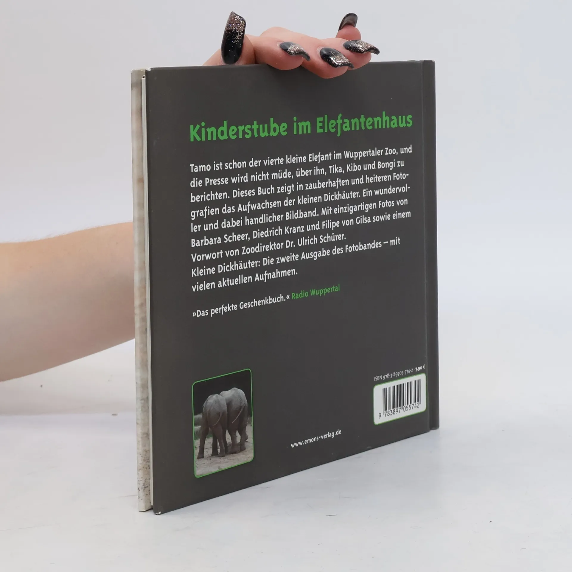 Die Presse wird nicht müde, über Bongi, Kibo und Tika im Wuppertaler Zoo zu berichten. Im Dezember 2007 wird nun das vierte Elefantenbaby erwartet. Das Buch zeigt in zauberhaften und heiteren Fotografien das Aufwachsen der kleinen Dickhäuter.