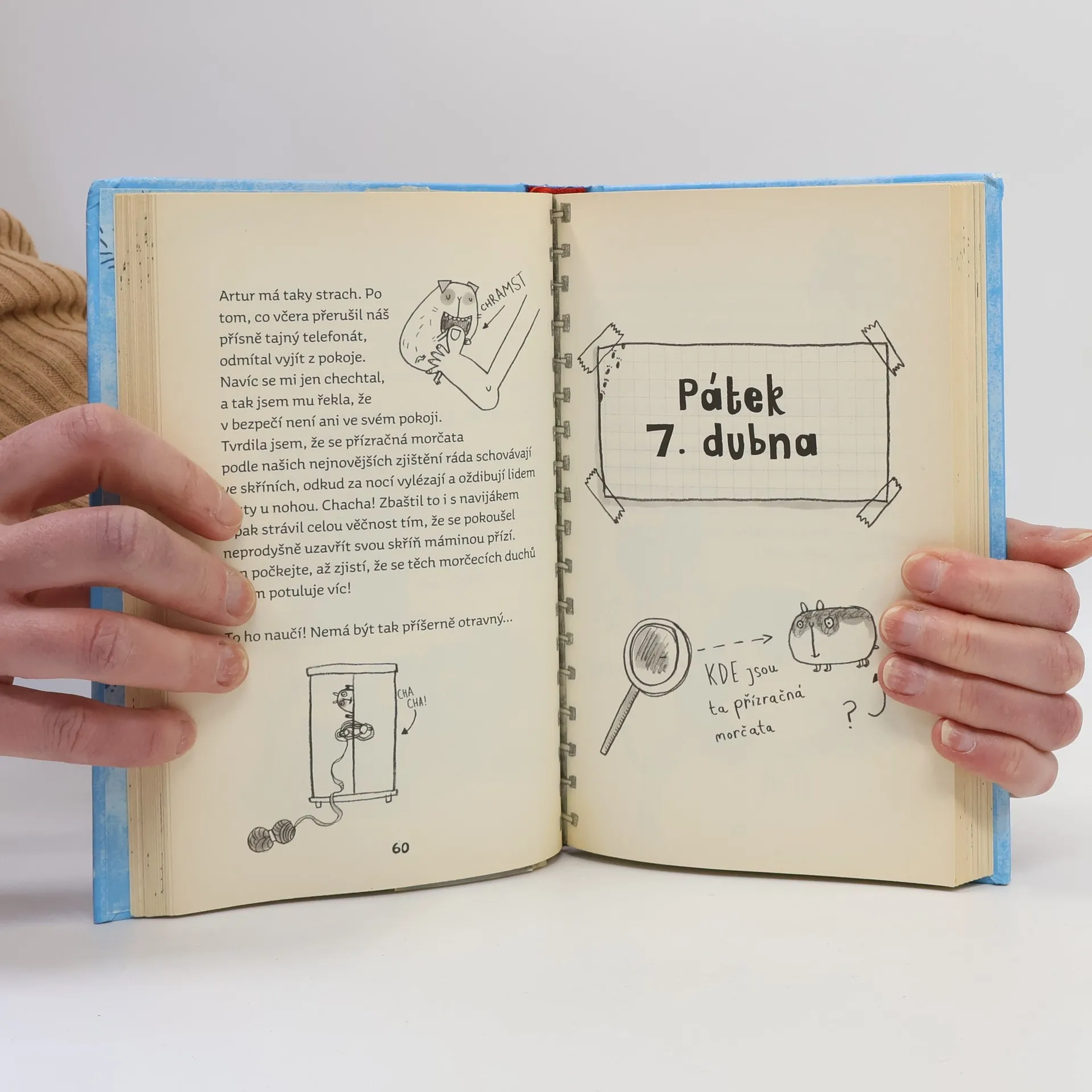 Majda Čmuchalová možná na první pohled vypadá jako docela obyčejná devítiletá holčička, ale pozor, zdání klame – spolu se svými nejlepšími kamarádkami totiž tvoří tým detektivní kanceláře Holky Čmuchalky, která už vyřešila spoustu nejrůznějších záhad, hádanek a podivností. Teď je ovšem čeká první opravdu velký případ. Paní učitelka totiž v noci na zahradě spatřila ducha svého milovaného morčátka! Majda neváhá ani vteřinu a se svými věrnými kolegyněmi po boku se okamžitě vrhne na vyšetřování. Podaří se povedené trojce Holek Čmuchalek přijít na kloub strašidelné záhadě přízračného morčete?