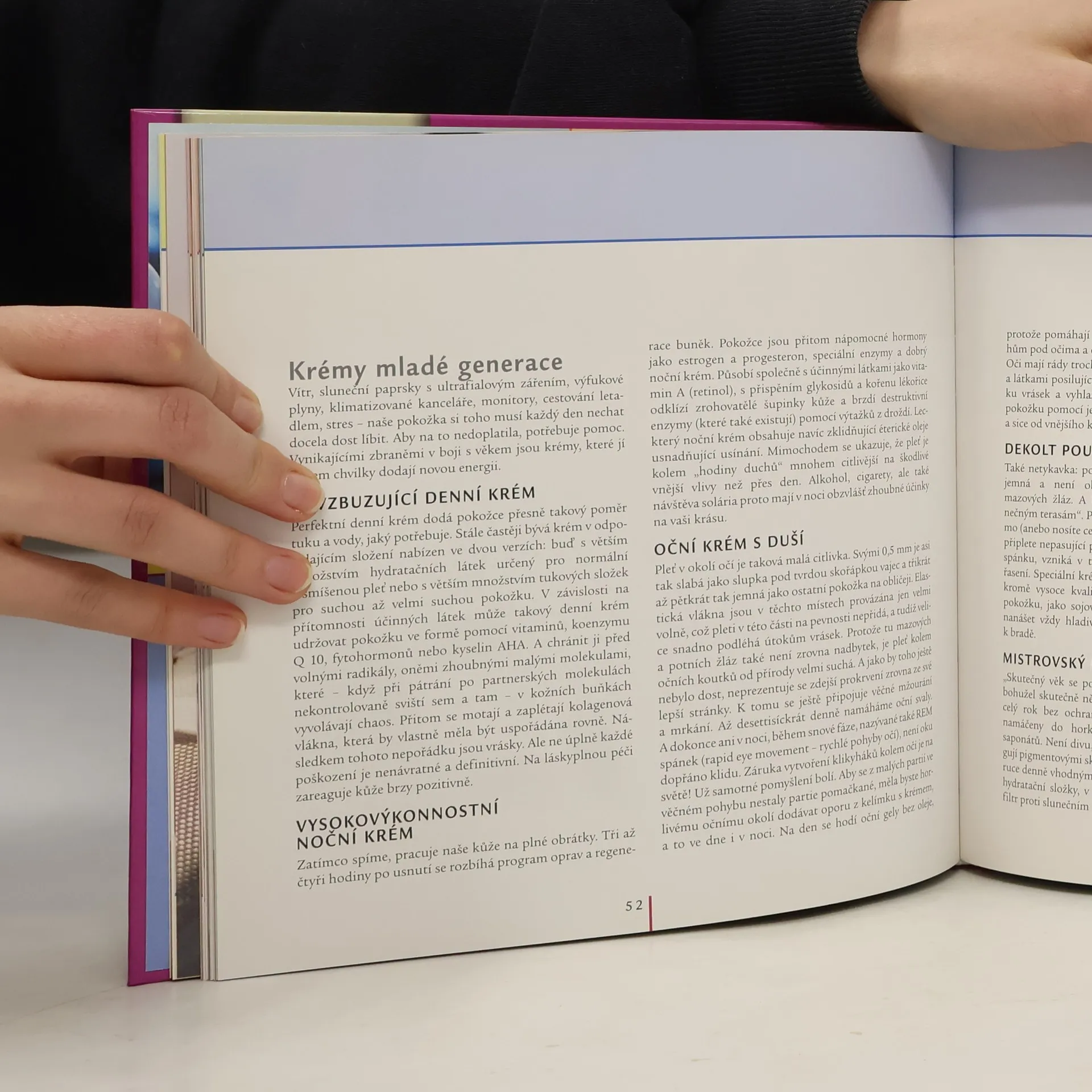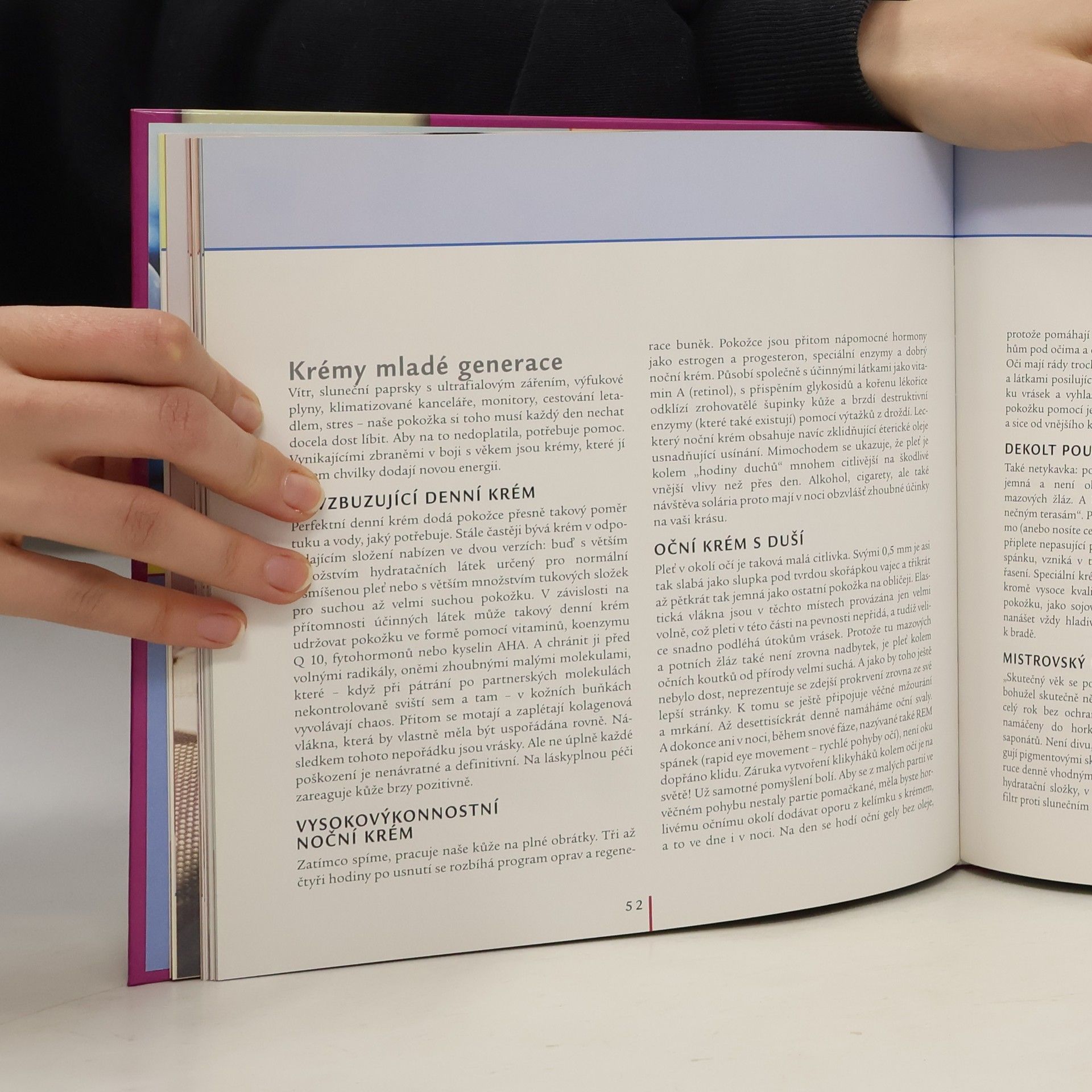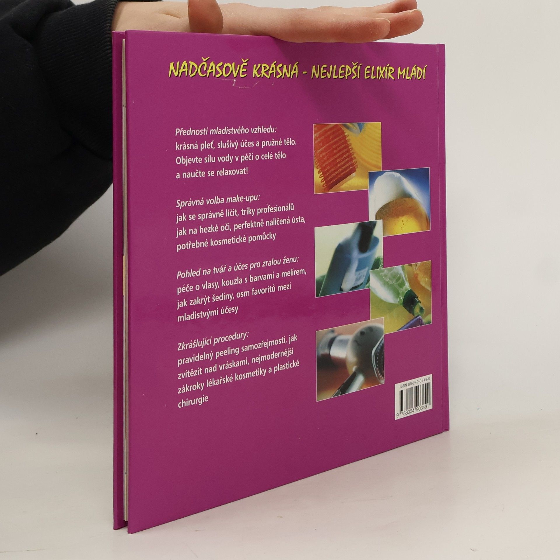 Nadčasově krásná - nejlepší elixír mládí. Přednosti mladistvého vzhledu: krásná pleť, slušivý účes a pružné tělo. Objevte sílu vody v péči o celé tělo a naučte se relaxovat. Správná volba make-upu aneb hra na schovávanou: jak se správně líčit, triky profesionálů jak na hezké oči, perfektně nalíčená ústa, potřebné kosmetické pomůcky. Pohled na tvář a účes pro zralou ženu: péče o vlasy, kouzla s barvami a melírem, jak zakrýt šediny, osm favoritů mezi mladistvými účesy. Zkrášlující procedury: pravidelný peeling samozřejmostí, jak zvítězit nad vráskami, nejmodernější zákroky lékařské kosmetiky a plastické chirurgie.