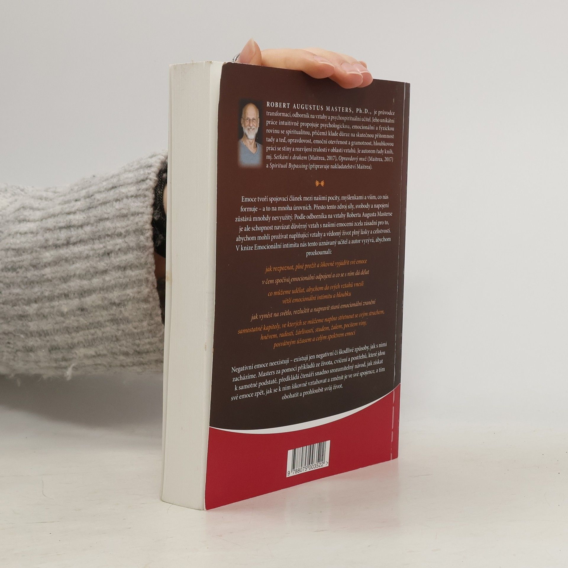 Emoce tvoří spojovací článek mezi našimi pocity, myšlenkami a vším, co nás formuje – a to na mnoha úrovních. Přesto tento zdroj síly, svobody a napojení zůstává mnohdy nevyužitý. Podle odborníka na vztahy Roberta Augusta Masterse je ale schopnost navázat důvěrný vztah s našimi emocemi zcela zásadní pro to, abychom mohli prožívat naplňující vztahy a vědomý život plný lásky a celistvosti. V knize Emocionální intimita nás tento uznávaný učitel a autor vyzývá, abychom prozkoumali: • jak rozpoznat, plně prožít a šikovně vyjádřit své emoce • v čem spočívá emocionální odpojení a co se s ním dá dělat • co můžeme udělat, abychom do svých vztahů vnesli větší emocionální intimitu a hloubku • jak vynést na světlo, rozluštit a napravit stará emocionální zranění • samostatné kapitoly, ve kterých se můžeme naplno střetnout se svým strachem, hněvem, radostí, žárlivostí, studem, žalem, pocitem viny, posvátným úžasem a celým spektrem emocí Negativní emoce neexistují – existují jen negativní či škodlivé způsoby, jak s nimi zacházíme. Masters za pomoci příkladů ze života, cvičení a postřehů, které jdou k samotné podstatě, předkládá čtenáři snadno srozumitelný návod, jak získat své emoce zpět, jak se k nim šikovně vztahovat a změnit je ve své spojence, a tím obohatit a prohloubit svůj život.