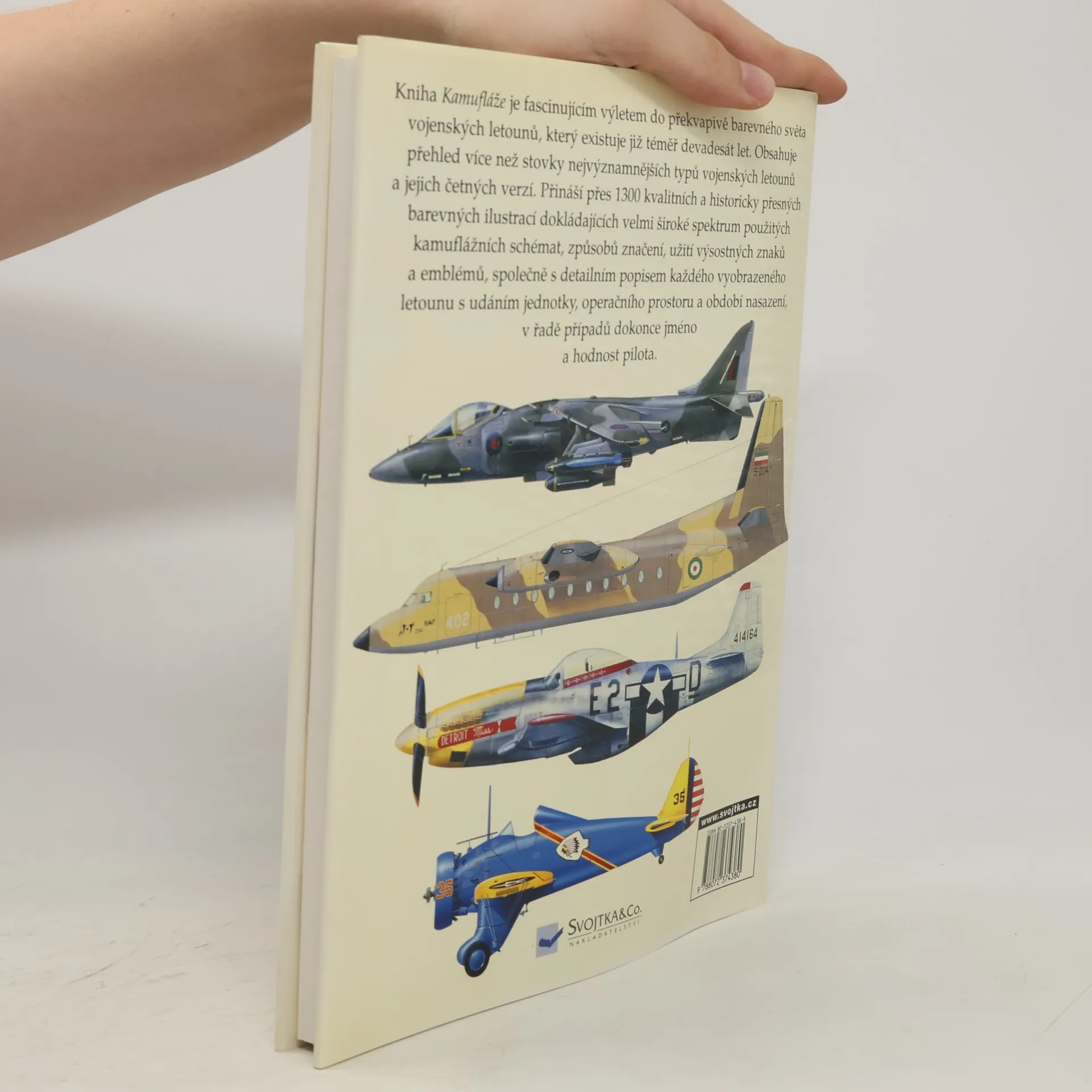 Kniha obsahuje přehled více než stovky nejvýznamnějších typů vojenských letounů a jejich četných verzí. Přináší přes 1300 kvalitních a historicky přesných barevných ilustrací dokládajících velmi široké spektrum použitých kamuflážních schémat, způsobů značení, užití výsostných znaků a emblémů, společně s detailním popisem každého vyobrazeného letounu s udáním jednotky, operačního prostoru a období nasazení, v řadě případů dokonce jméno a hodnost pilota.