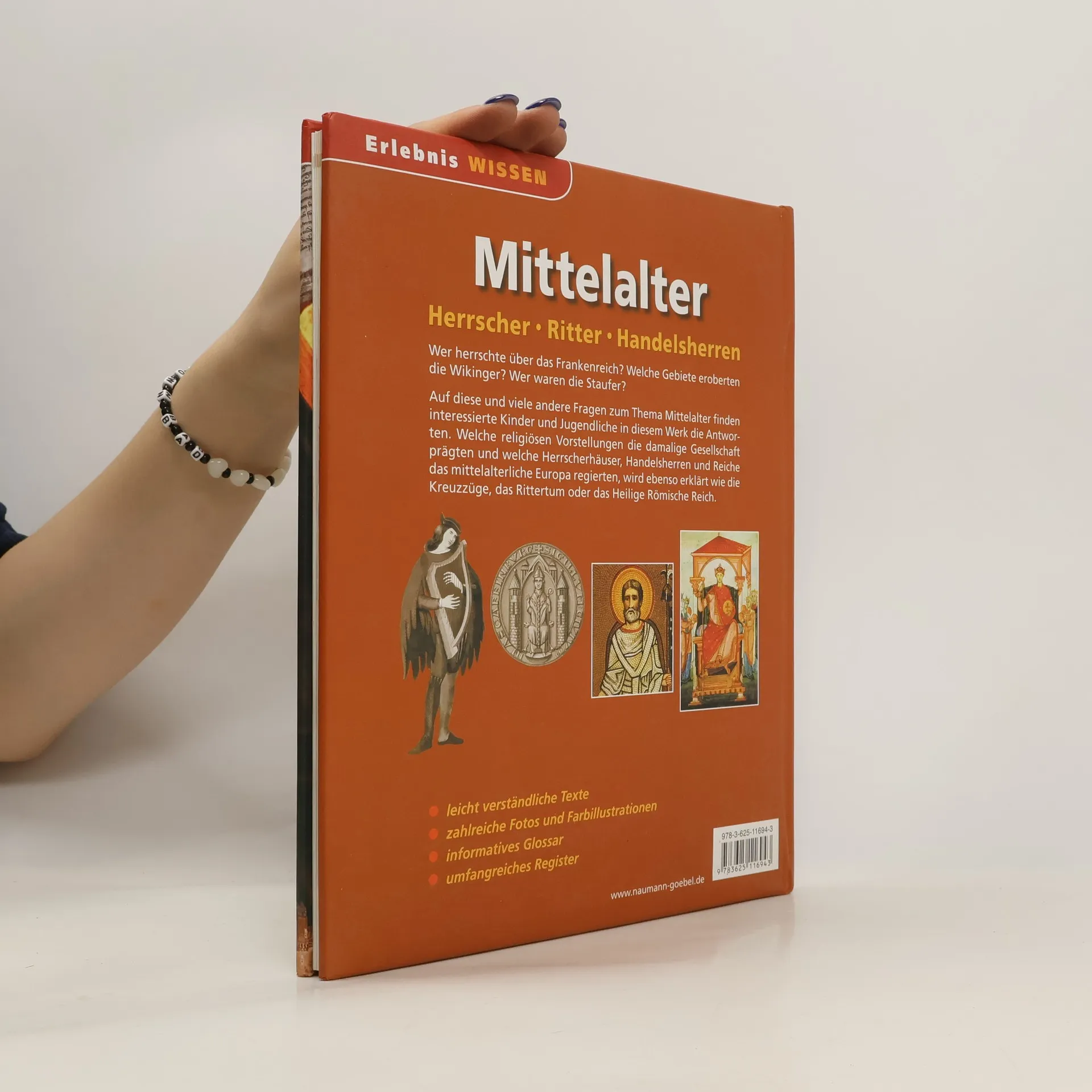 Wer herrschte über das Frankenreich? Welche Gebiete eroberten die Wikinger? Wer waren die Staufer? Auf diese und viele andere Fragen zum Thema Mittelalter finden interessierte Kinder und Jugendliche in diesem Werk die Antworten. Welche religiösen Vorstellungen die damalige Gesellschaft prägten und welche Herrscherhäuser, Handelsherren und Reiche das mittelalterliche Europa regierten, wird ebenso erklärt wie die Kreuzzüge, das Rittertum oder das Heilige Römische Reich. In dieser Reihe sind außerdem erschienen: Das Weltall, Die Erde, Der Körper, Technik, Dinosaurier, Säugetiere, Amphibien und Reptilien.