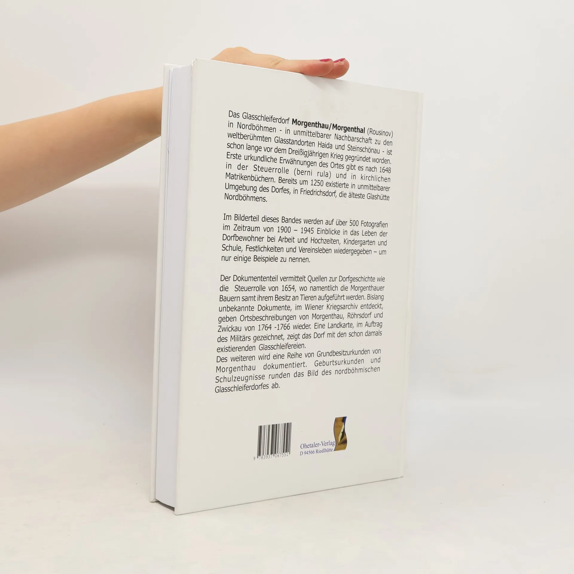 Die Geschichte des Dorfes Morgenthau in Nordböhmen. Hier waren seit Jahrhunderten deutsche Glasschleifer am Werk und veredelten Gläser. Manfred Rimpler hat auf den Spuren seiner Vorfahren die Geschichte des Glasschleiferdorfes erforscht. Zahlriche historische Fotos und alte Urkunden runden das Buch ab. Dramatischer Höhepunkt des Buches ist der abgelichtete „Austreibungsbefehl“, der das Ende der deutschen Besiedelung in Nordböhmen besiegelte.