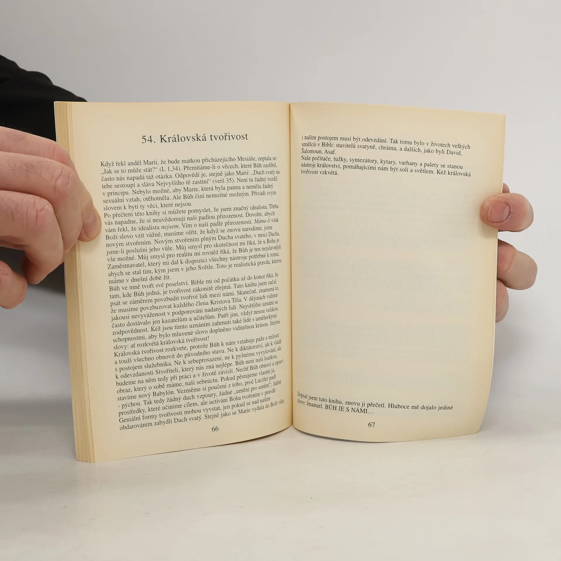 Kniha myšlenek holandského autora (m.j. vedoucího Continental Ministries Europe, rytíře a politického poradce) o umění, smyslu pro krásu a tvořivosti jako Božích darech. "Bůh tvoří a dává nám talenty abychom mohli tvořit též."