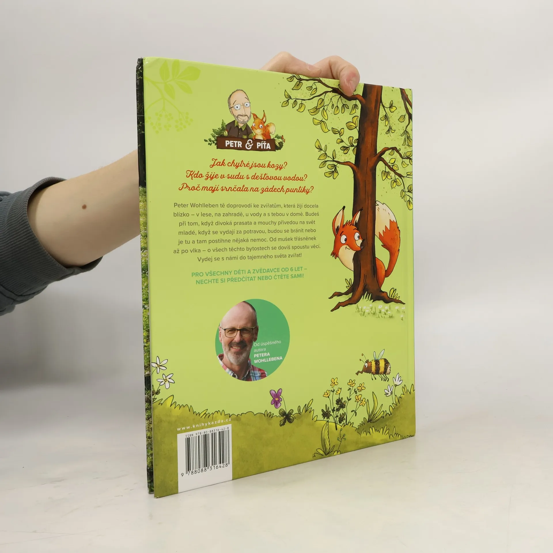 Ve své nejnovější knížce pro děti se Peter Wohlleben, autor řady úspěšných knih o lese, tentokrát věnuje zvířatům. Známý lesník doprovodí malé čtenáře ke zvířatům, která žijí docela blízko – v lese, na zahradě, u vody a s námi v domě. Budou při tom, když divoká prasata a mouchy přivedou na svět mladé, když se vydají za potravou, budou se bránit nebo je tu a tam postihne nějaká nemoc. Od mušek třásněnek až po vlka – o všech těchto bytostech se děti dozví spoustu zajímavých věcí. Vydejte se s námi do tajemného světa zvířat! Znáte odpovědi na tyto otázky? Jak chytré jsou kozy? Kdo žije v sudu s dešťovou vodou? Proč mají srnčata na zádech puntíky? Knížka je, stejně jako autorův bestseller Slyšíš, jak mluví stromy? doplněna nádhernými ilustracemi Stefanie Reich a fotografiemi Jense Steingässera. Knížka je určená dětem od šesti let, ale vzhledem ke krásným ilustracím a nenáročným textům si knížku oblíbí i mladší a příjemně překvapí i rodiče či prarodiče.