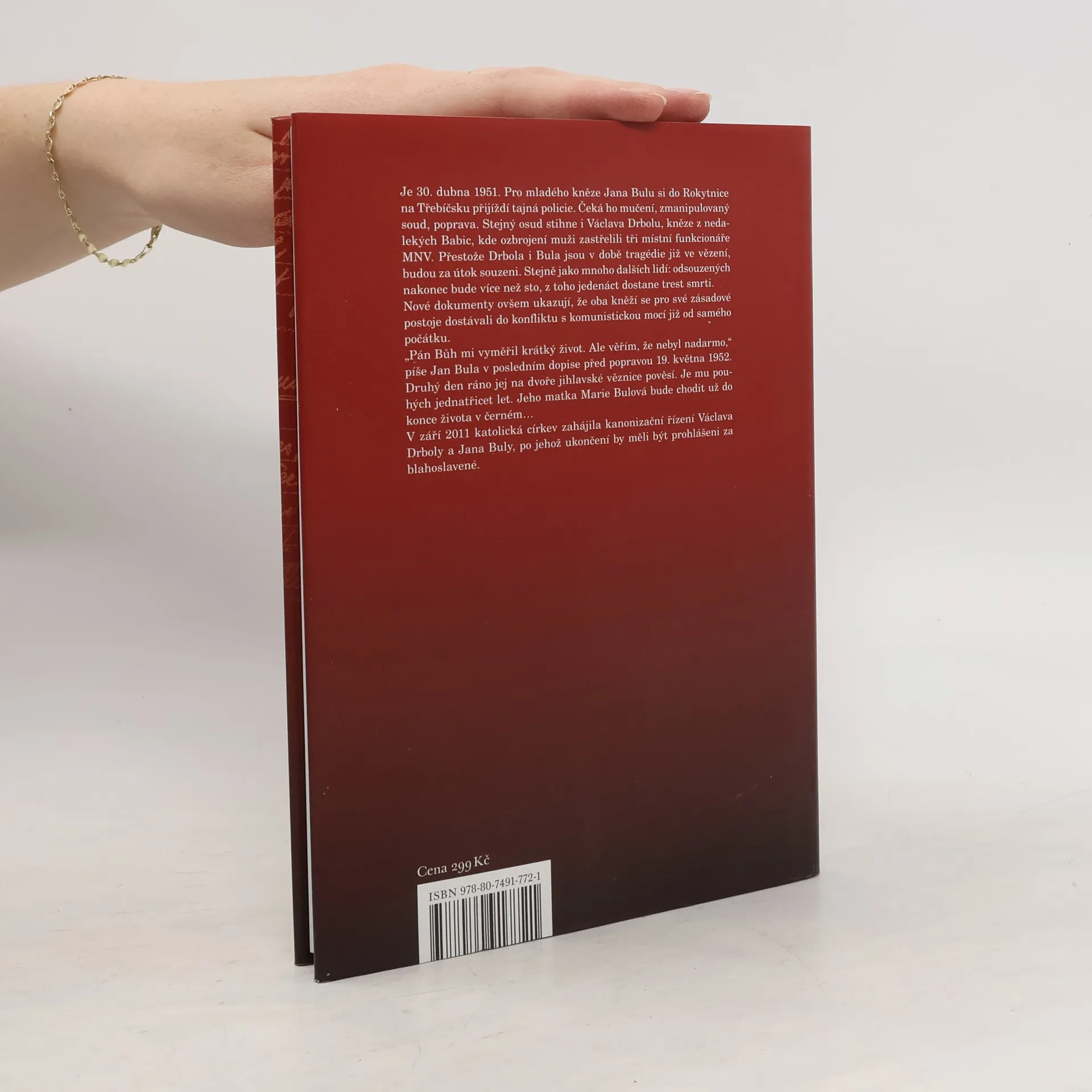 Život a mučednická smrt kněží Jana Buly a Václava Drboly od Babic. Je třicátého dubna 1951. Pro faráře Jana Bulu si do Rokytnice na Třebíčsku přijíždí tajná policie. Čeká ho cesta do vyšetřovny v Jihlavě, kruté mučení a v květu 1952 poprava. Stejný osud stihne i faráře Václava Drbolu, který předtím bude rovněž brutálně mučen. Drbola je zatčen sedmnáctého června 1951 na faře v Babicích. Je to osudové místo, hned vedle se nachází škola, do níž o několik týdnů později vniknou ozbrojení muži a zastřelí tři místní funkcionáře. Přestože Drbola i Bula jsou v době tragédie již ve vězení, budou za útok souzeni. Stejně jako další: odsouzených nakonec bude více než sto, z toho jedenáct dostane trest smrti. V září 2011 bylo zahájeno řízení o blahořečení Václava Drboly a Jana Buly. Publikaci doprovází bohatá obrazová příloha.