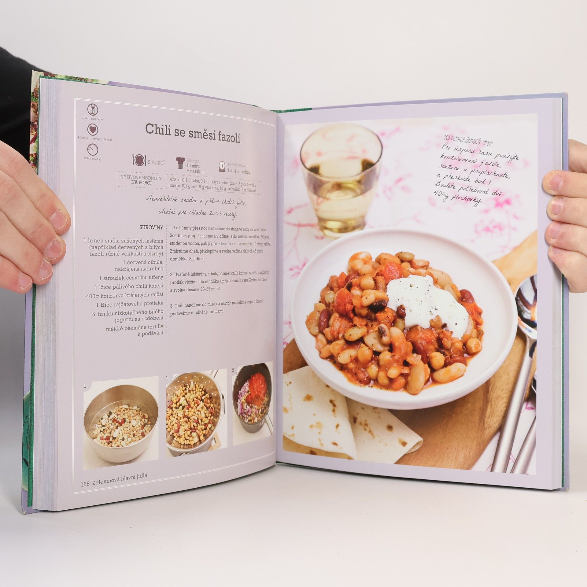 Dobré jídlo připravené jednoduše zdravě - Téměř 100 receptů s výživovými hodnotami a fotografiemi přípravy Chcete-li žít zdravěji a přitom se neomezovat v chuti a pestrosti jídla, jste na správné adrese! Kniha plná „hrnkových" receptů na svěží, zdravá a zároveň výborná jídla i dezerty se vám stane nepostradatelným průvodcem lepším životním stylem. U každého pokrmu najdete podrobné výživové informace a díky tomu budete mít stále přehled o tom, co přesně jíte. Díky podrobným návodům, fotografiím provázejícím recepty krok za krokem a kuchařským tipům získáte dovednosti potřebné pro přípravu chutných jídel pro celou rodinu. Vyzkoušejte křupavé snídaňové kapsy, rajčata s čočkou a kozím sýrem, halibuta s paprikovo-mandlovou omáčkou, česnekové kuře s pórkem, ananasové carpaccio s mangovou omáčkou nebo jablečný dip.