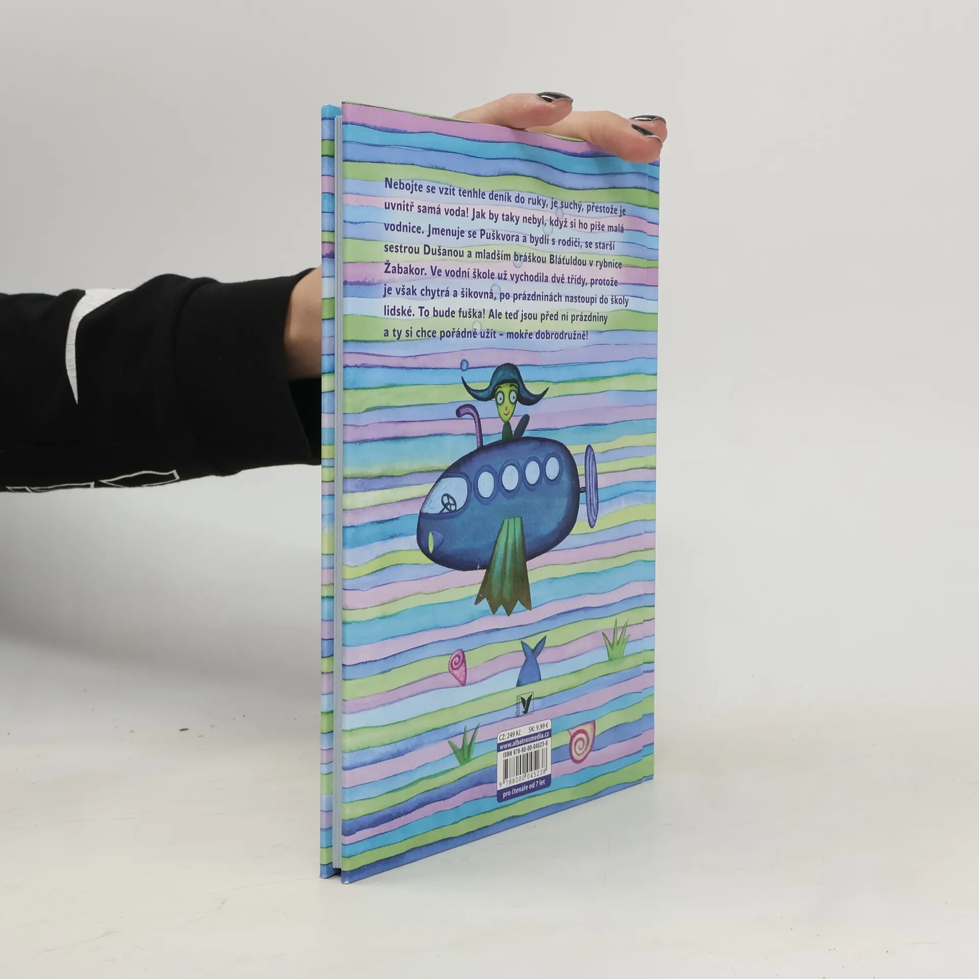Nebojte se vzít tenhle deník do ruky, je suchý, přestože je uvnitř samá voda! Jak by taky nebyl, když si ho píše malá vodnice. Jmenuje se Puškvora a bydlí s rodiči, se starší sestrou Dušanou a mladším bráškou Bláťuldou v rybníce jménem Žabakor. Ve vodní škole už vychodila dvě třídy, protože je však chytrá a šikovná, po prázdninách nastoupí do školy lidské. To bude fuška! Ale teď jsou před ní prázdniny a ty si chce pořádně užít – mokře dobrodružně! Bavte se a luštěte s přiloženým sešitem. Pro toho, kdo pěkně přečetl knížku, to bude hračka!