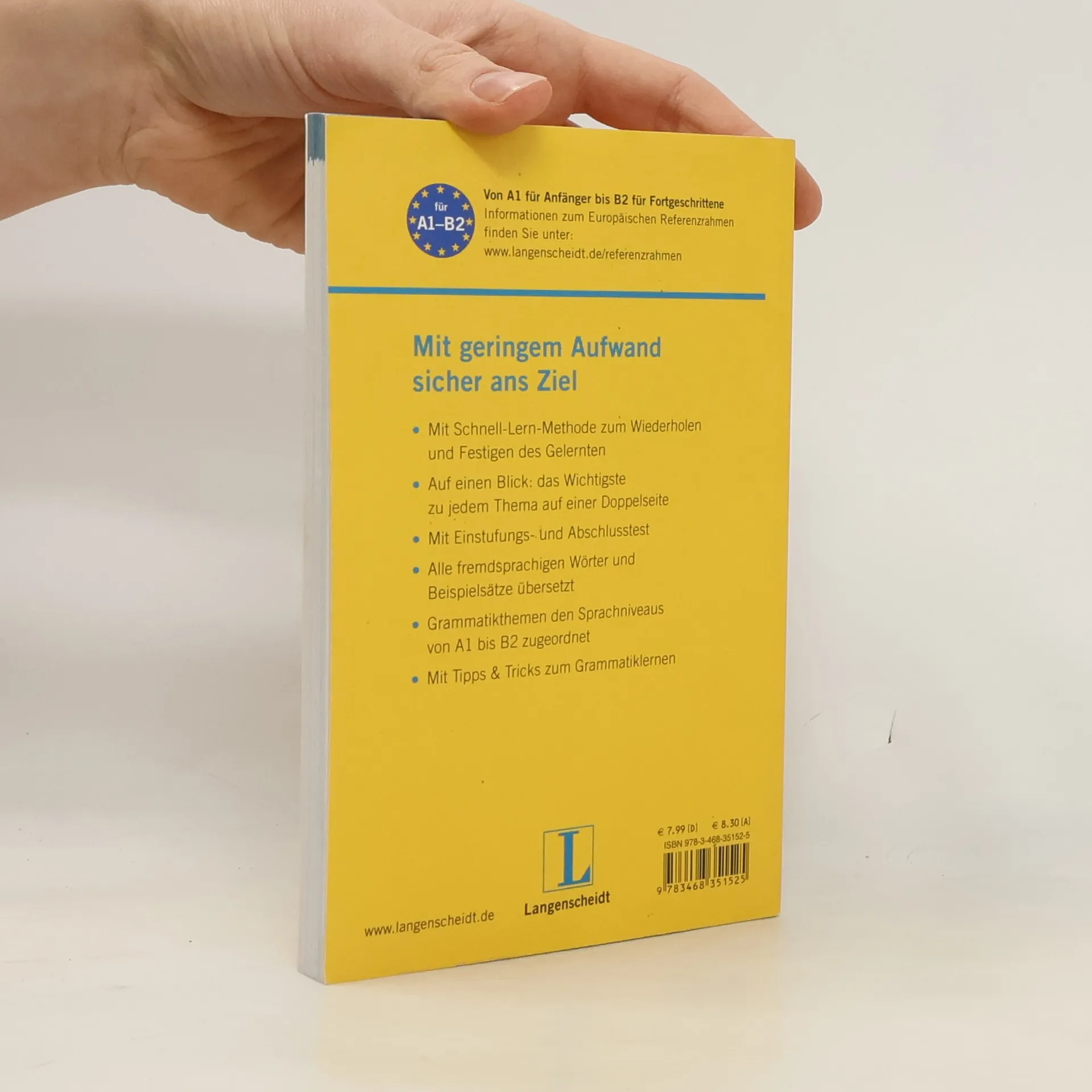 Die Kurzgrammatik Französisch mit der Schnell-Lern-Methode bietet einen optimalen Überblick über die Grammatik: Praktische Übersichtsseiten fassen das Wichtigste zusammen und festigen so das Gelernte. Ein Einstufungstest und Online-Übungen machen das Rundum-sorglos-Paket perfekt. Das Wichtigste aus der Grammatik im Überblick Schnell-Lern-Methode zum Wiederholen und Festigen des Gelernten Tests zu jedem Kapitel, Einstufungstest und zusätzliche Online-Übungen Grammatikthemen nach Sprachniveaus (A1-B2) gemäß Europäischem Referenzrahmen eingeteilt Mit Tipps & Tricks zum Grammatiklernen