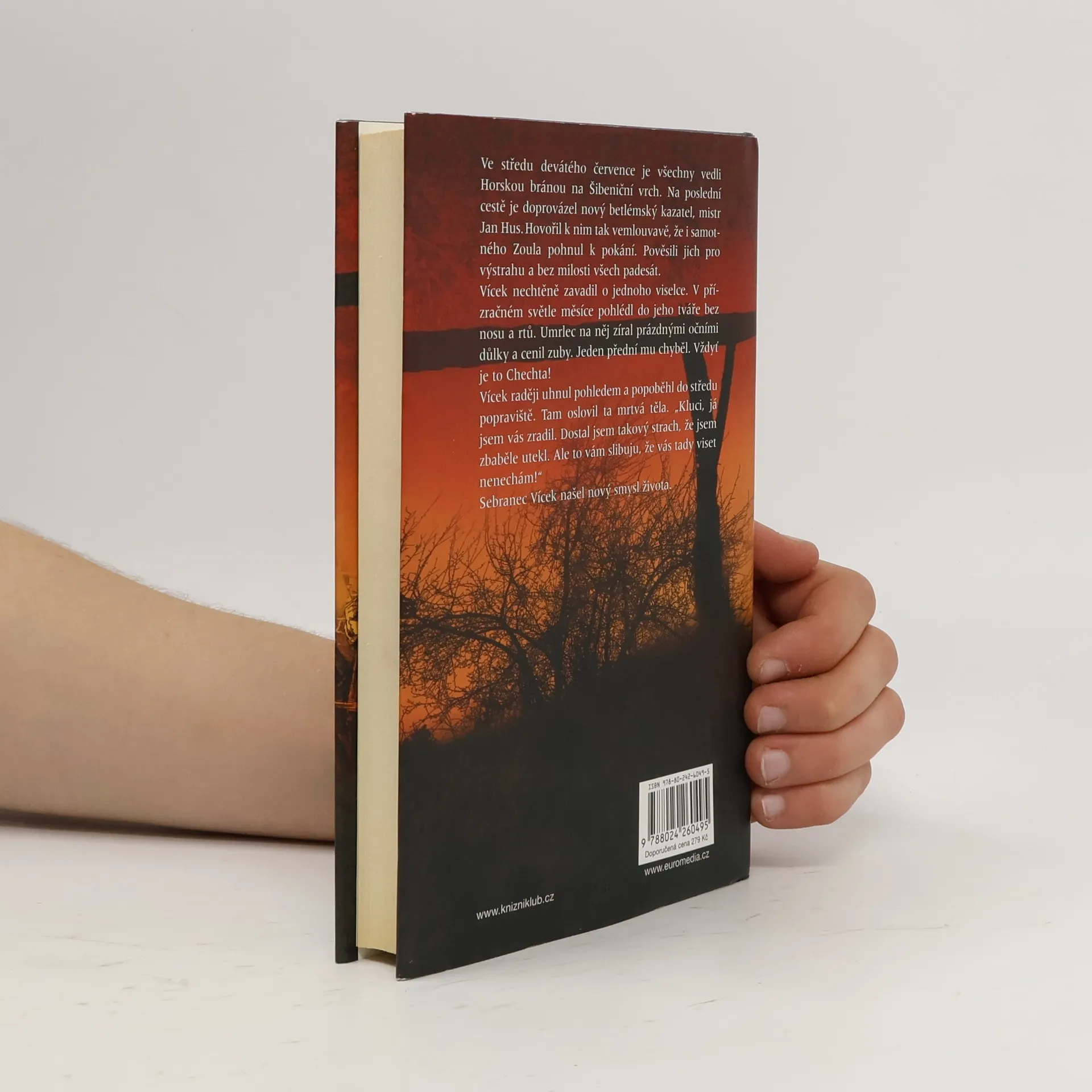 Oblíbený autor uzavírá svou volnou sérii historických příběhů s detektivní zápletkou románem, jehož hlavním hrdinou je opět Václav od Černého koně. Tentokrát řeší velmi zapeklitý případ, neboť u vchodů staropražských domů se znenadání začínají objevovat nebožtíci, které někdo sňal ze Šibeničního vrchu. U kostela svatého Jindřicha se vraždí a podezřelý je i biřic Vohnout. Ale hlavně: Odváží se podrychtář obžalovat všemocného podkomořího Zikmunda Hulera, králova oblíbence, který si nechává říkat Zikmund z Orlíka?