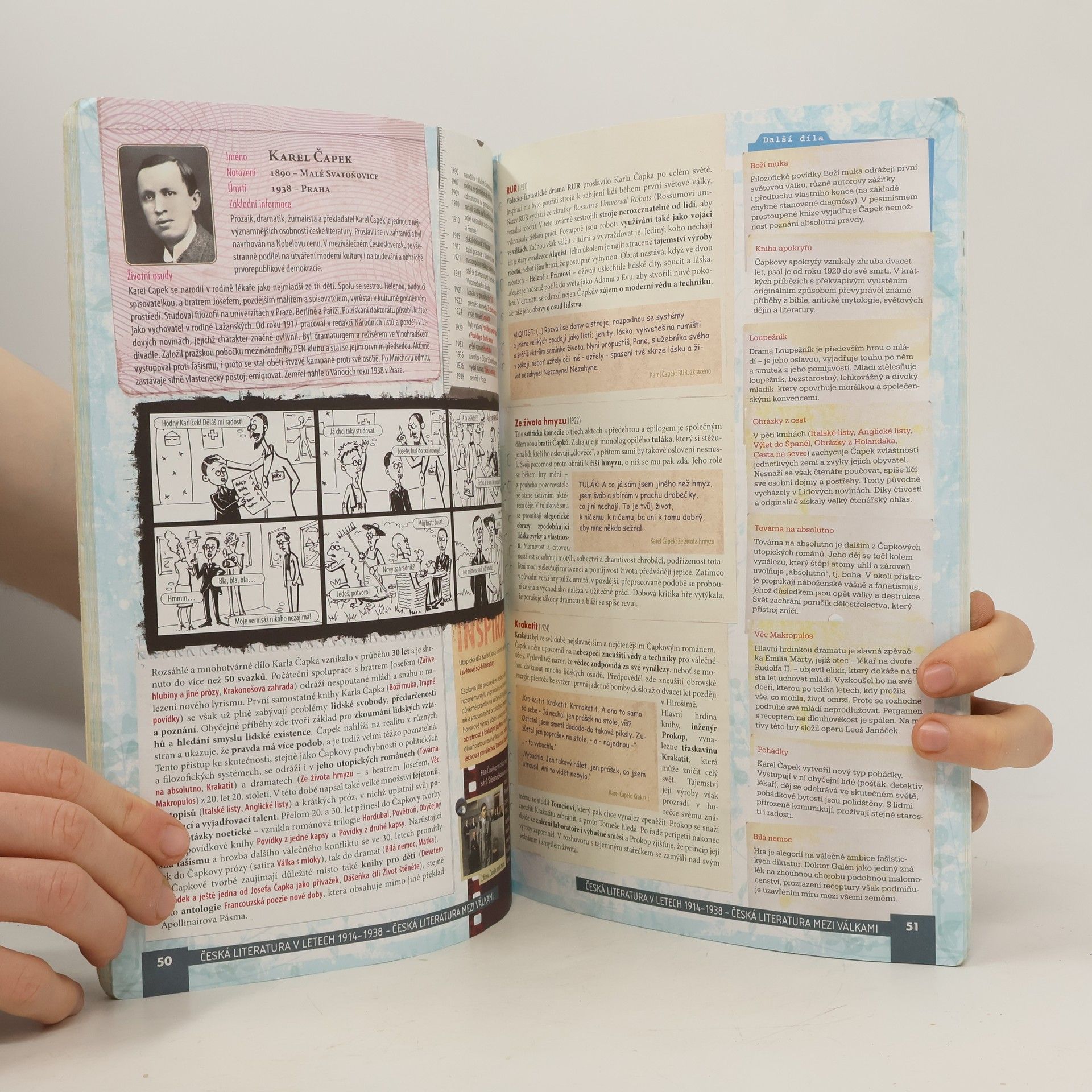 Pracovní sešit rozvíjí a procvičuje znalosti z učebnice a podporuje dovednosti a klíčové kompetence. Jeho struktura odpovídá učebnici, což usnadňuje práci. Na konci každého tematického celku se nachází opakovací kapitola, která prohlubuje znalosti studentů. Obsahuje množství ukázek z literárních děl, které lze využít jako čítanku, a k nim jsou připojeny otázky a úkoly pro dosažení očekávaných výstupů a rozvoj mezipředmětových vztahů dle RVP pro střední odborné a gymnaziální vzdělávání. Sešit zahrnuje cvičení pro individuální i skupinovou práci a nabízí náměty pro dlouhodobější projekty. Některá cvičení se zaměřují na jazykový materiál, procvičují pravopis, tvarosloví a podporují tvůrčí práci s textem. Dále rozvíjejí komunikační a sociální dovednosti studentů na základě literárního učiva a učí práci s různými informačními zdroji. Většinu cvičení lze vypracovat přímo do sešitu, což šetří čas a umožňuje studentům soustředit se na učení místo nekonečných zápisů.