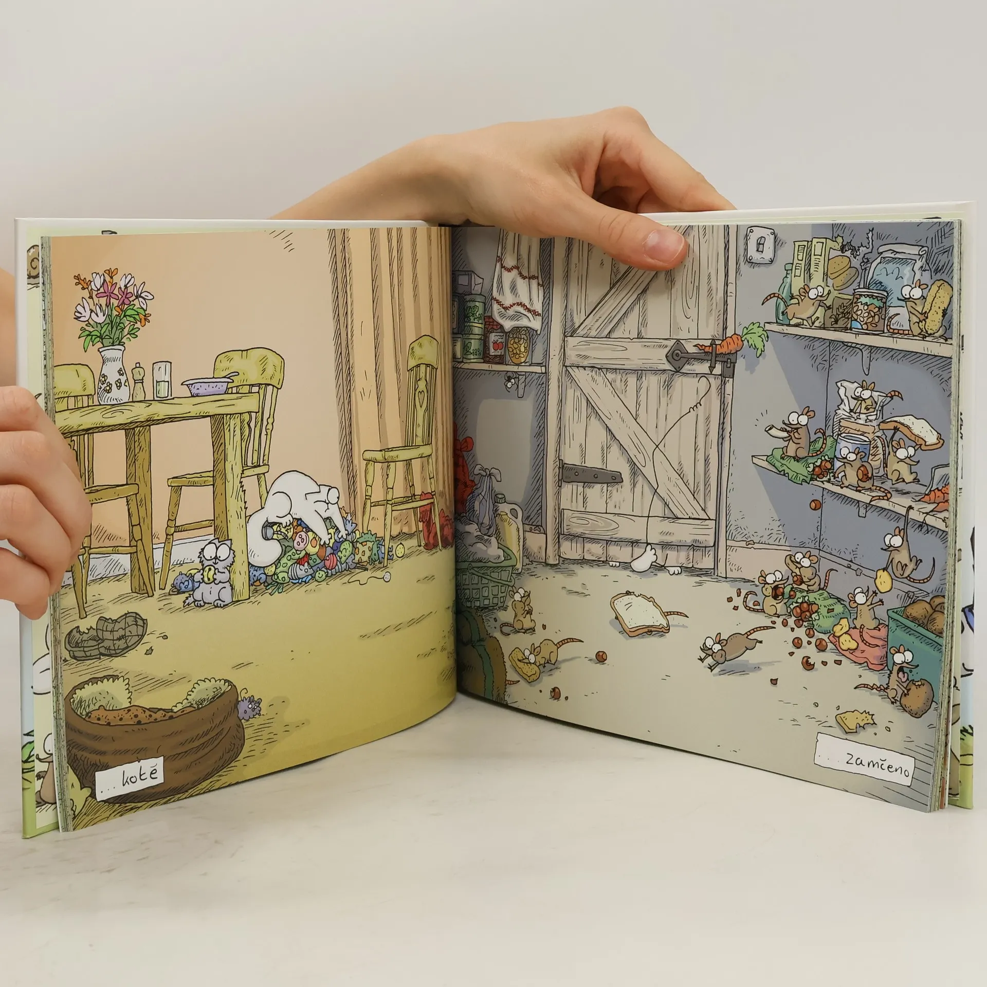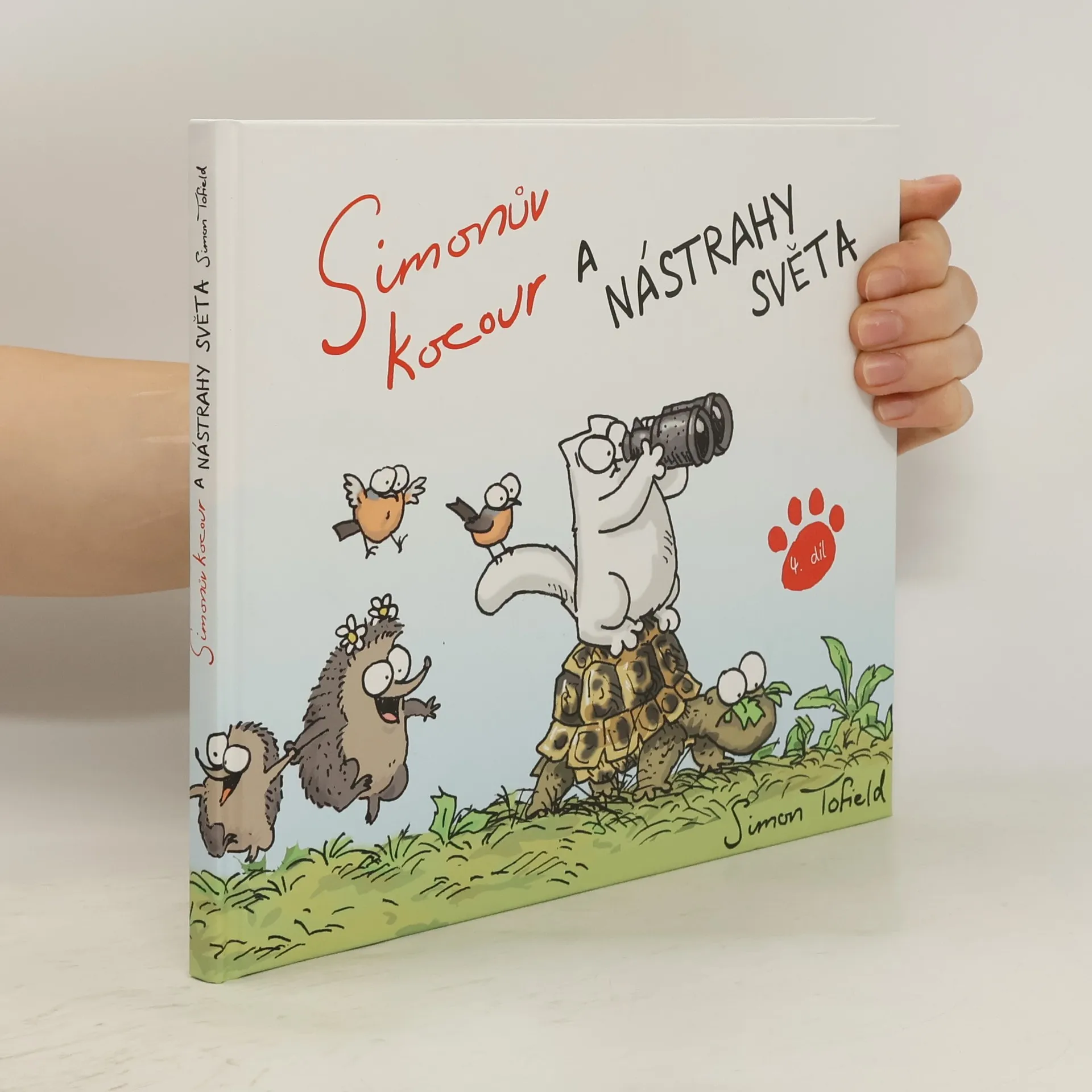 Po třech úspěšných vydáních příhod mazaného a požitkářského Simonova kocoura vychází nyní barevná kniha, která ve srovnání s předchozími černobílými kresbami neztrácí nic ze svého kouzla, ba naopak. Britský výtvarník Simon Tofield nás opět přivádí do domu a na zahradu domku, kde se odehrávají komická kocouří dobrodružství. Simonův kocour tentokrát svádí lítý boj s nejrůznějšími nástrahami, s veverkami, ježky, mravenci, strakapoudem a v neposlední řadě se svým milujícím a oddaným majitelem.