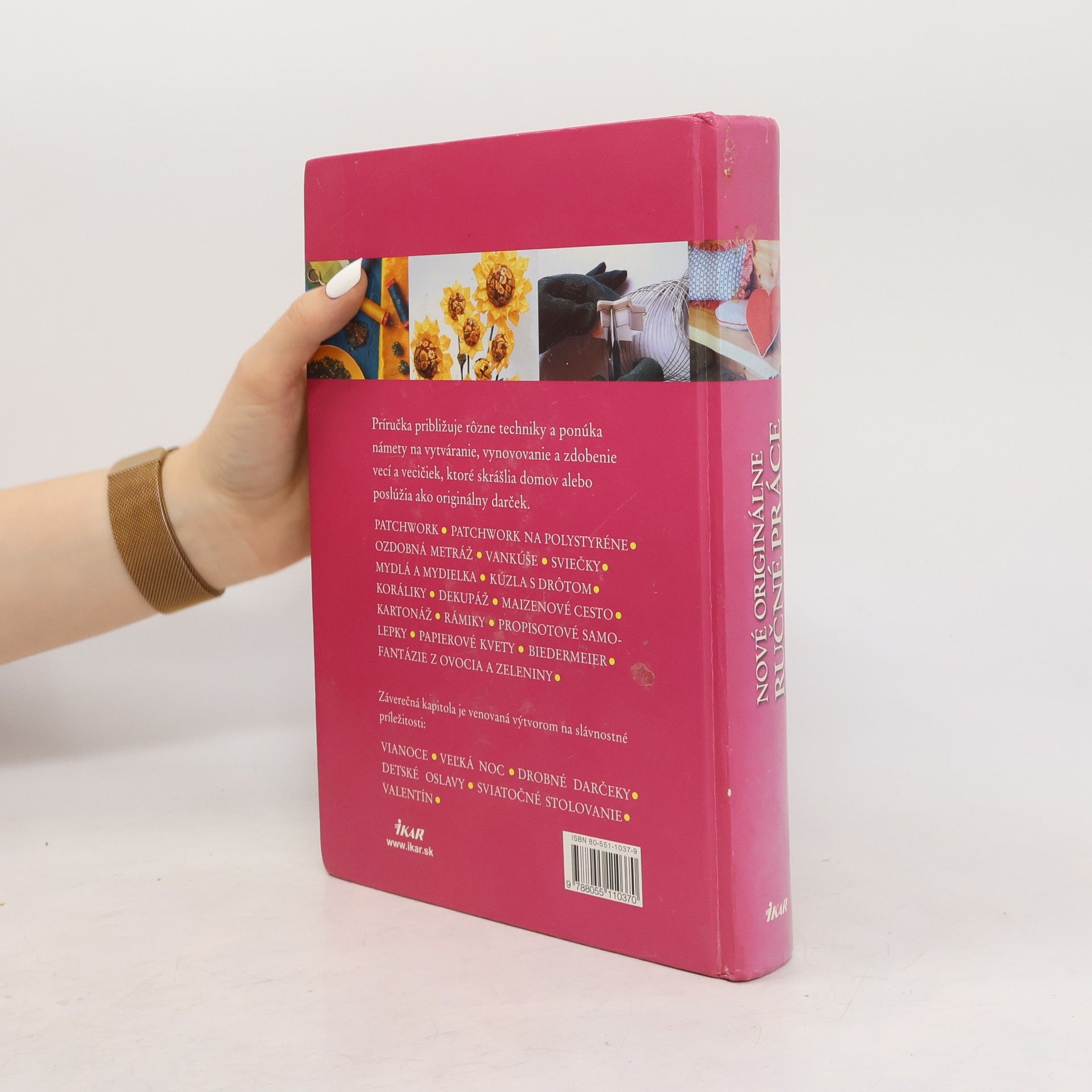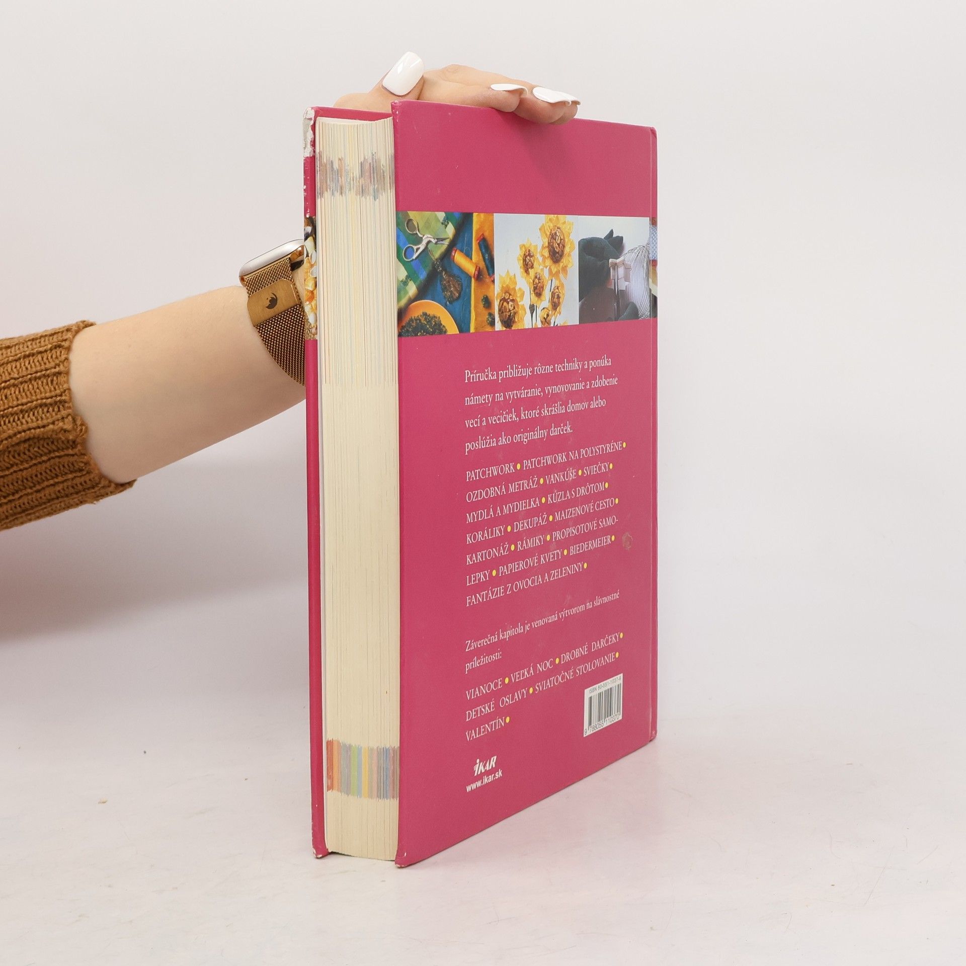 Príručka približuje rôzne techniky a ponúka námety na vytvárenie, vynovovanie a zdobenie vecí a vecičiek, ktoré skrášlia domov alebo poslúžia ako originálny darček. Nechajte sa inšpirovať: patchwork, patchwork na polystyréne, ozdobná metráž, vankúše, sviečky, mydlá a mydielka, kúzla s drôtom, koráliky, dekupáž, maizenové cesto, kartonáž, rámiky, propolisové samolepky, papierové kvety, biedermeier, fantázie z ovocia a zeleniny. Záverečná kapitola je venovaná výtvorom na slávnostné príležitosti: Vianoce, Veľkú noc, detské oslavy, sviatočné stolovanie, Valentína.