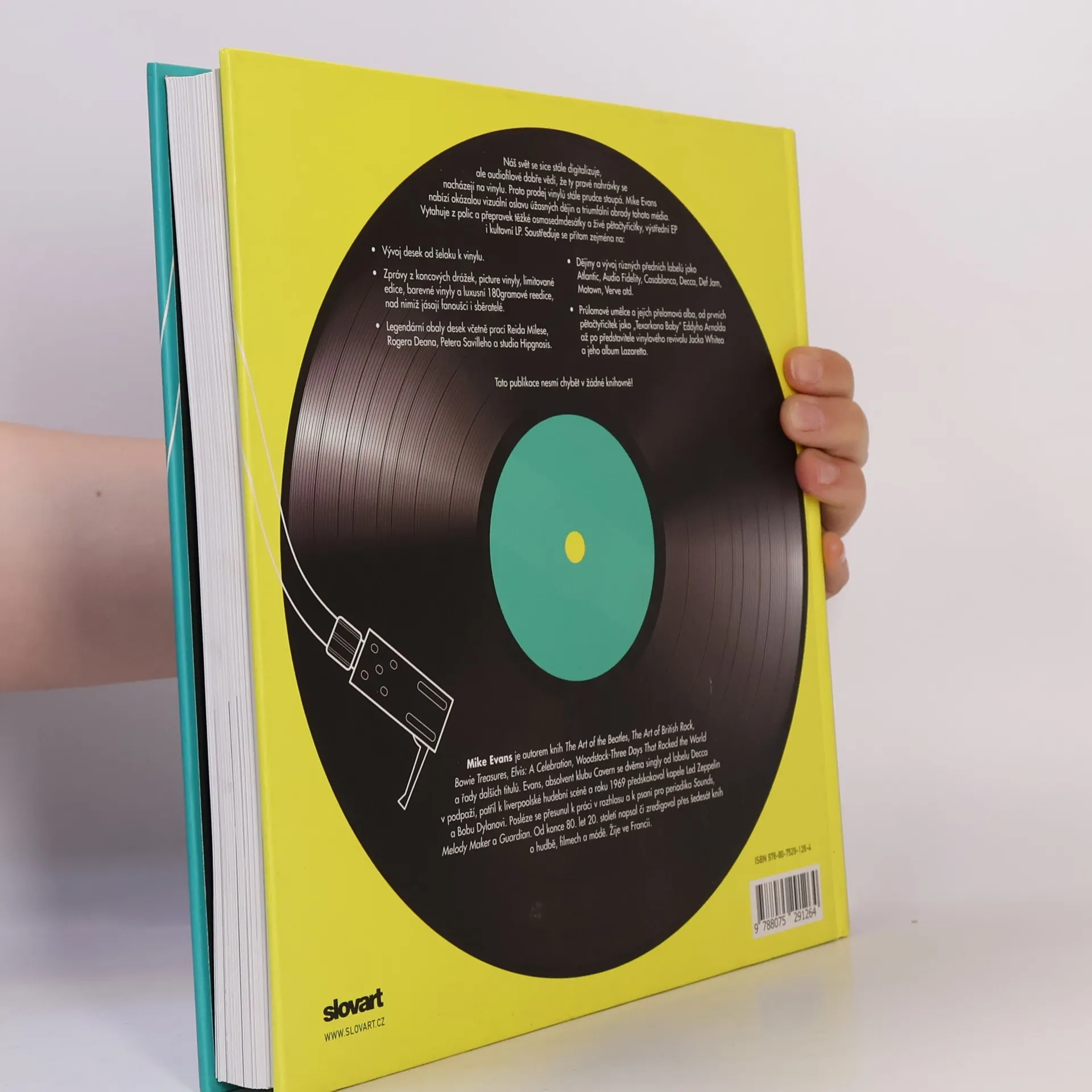 Náš svět se sice stále digitalizuje, ale milovníci hudby dobře vědí, že ty pravé nahrávky se nacházejí na gramodesce. Proto prodej vinylových alb stále prudce stoupá. Kniha Mikea Evanse je okázalou vizuální oslavou úžasných dějin a triumfálního návratu tohoto média. Autor vytahuje z polic a přepravek těžké osmasedmdesátky a živé pětačtyřicítky, výstřední EP i kultovní LP. Hlavní pozornost přitom věnuje zejména vývoji desek od šelaku k vinylu, tajemství zpráv z koncových drážek, limitované edice, barevné vinyly a luxusní 180gramové reedice, nad nimiž jásají fanoušci i sběratelé. Nezapomíná přitom ani na legendární obaly desek včetně prací Reida Milese, Rogera Deana, Petera Savilleho a studia Hipgnosis. Své místo zde mají i dějiny a vývoj různých předních značek jako Atlantic, Audio Fidelity, Casablanca, Decca, Def Jam, Motown, Verve atd., jakož i průlomoví umělci a jejich přelomové nahrávky, od prvních pětačtyřicítek jako „Texarkana Baby" Eddyho Arnolda až po představitele vinylového revivalu Jacka Whitea a jeho album Lazaretto.
