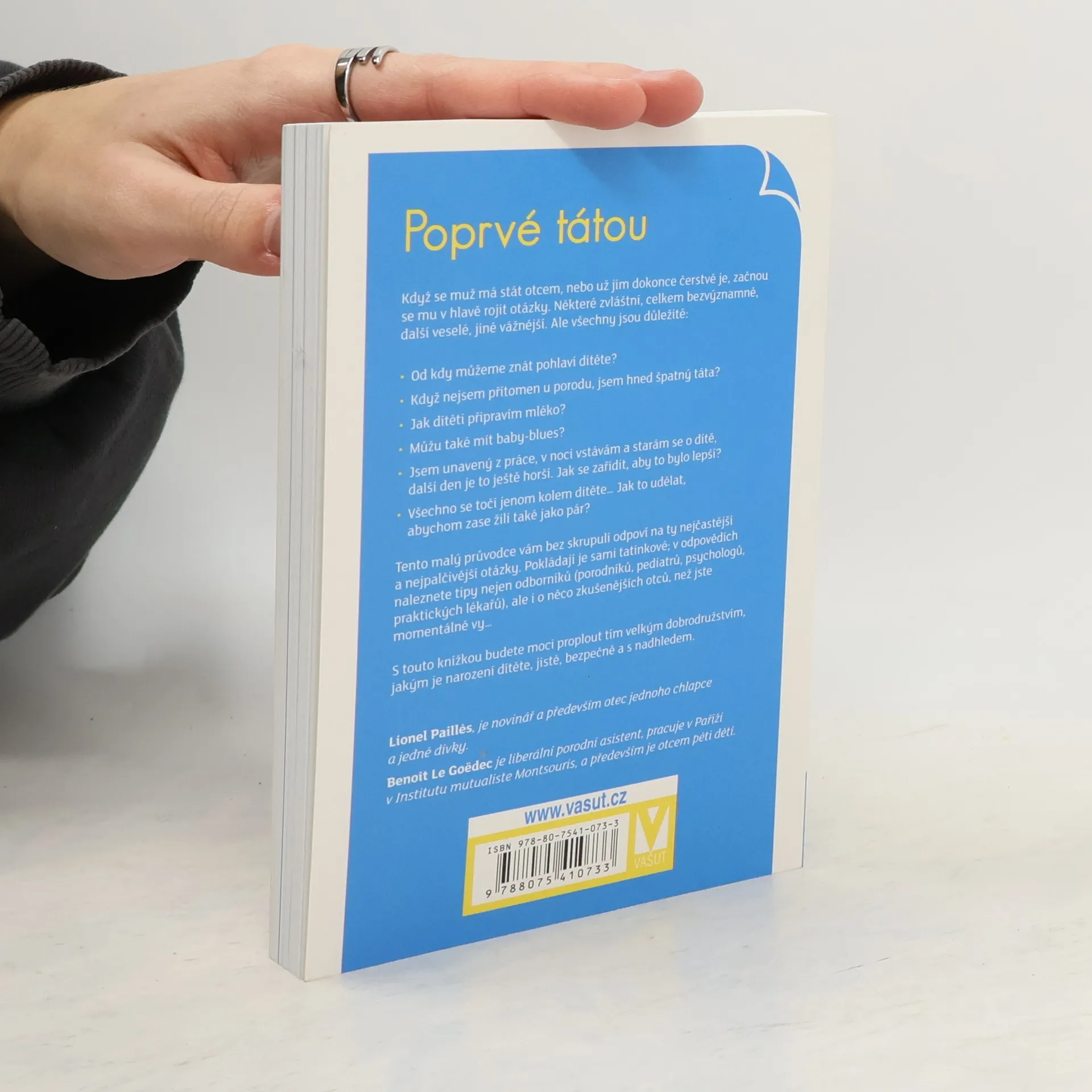 Když se muž má stát otcem, nebo už jím dokonce čerstvě je, začnou se mu v hlavě rojit otázky. Některé zvláštní, celkem bezvýznamné, další veselé, jiné vážnější. Ale všechny jsou důležité: • Od kdy můžeme znát pohlaví dítěte? • Když nejsem přítomen u porodu, jsem hned špatný táta? • Jak dítěti připravím mléko? • Můžu také mít baby-blues? • Jsem unavený z práce, v noci vstávám a starám se o dítě, další den je to ještě horší. Jak se zařídit, aby to bylo lepší? • Všechno se točí jenom kolem dítěte… Jak to udělat, abychom zase žili také jako pár? Tento malý průvodce vám bez skrupulí odpoví na ty nejčastější a nejpalčivější otázky. Pokládají je sami tatínkové; v odpovědích naleznete tipy nejen odborníků (porodníků, pediatrů, psychologů, praktických lékařů), ale i o něco zkušenějších otců, než jste momentálně vy… S touto knížkou budete moci proplout tím velkým dobrodružstvím, jakým je narození dítěte, jistě, bezpečně a s nadhledem.