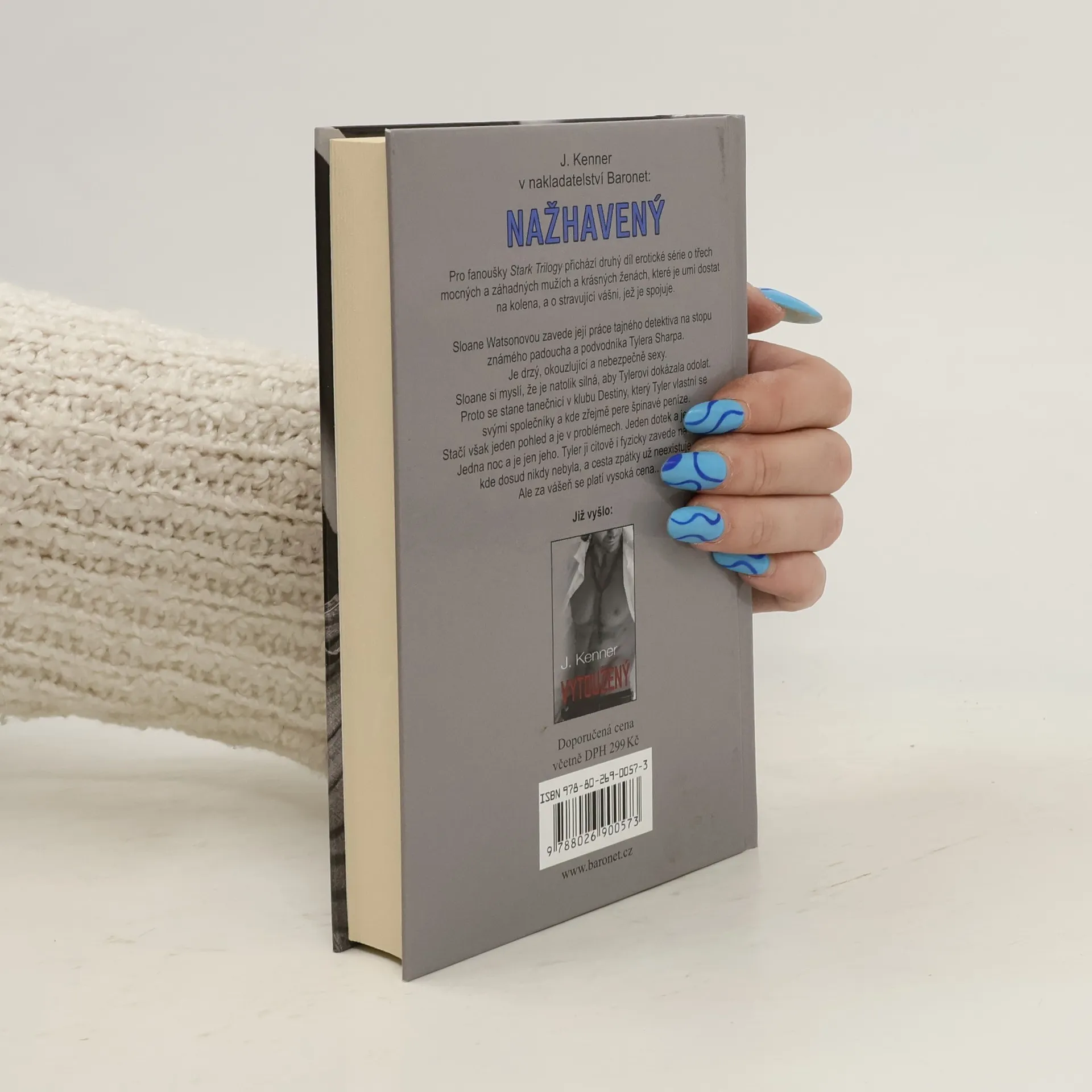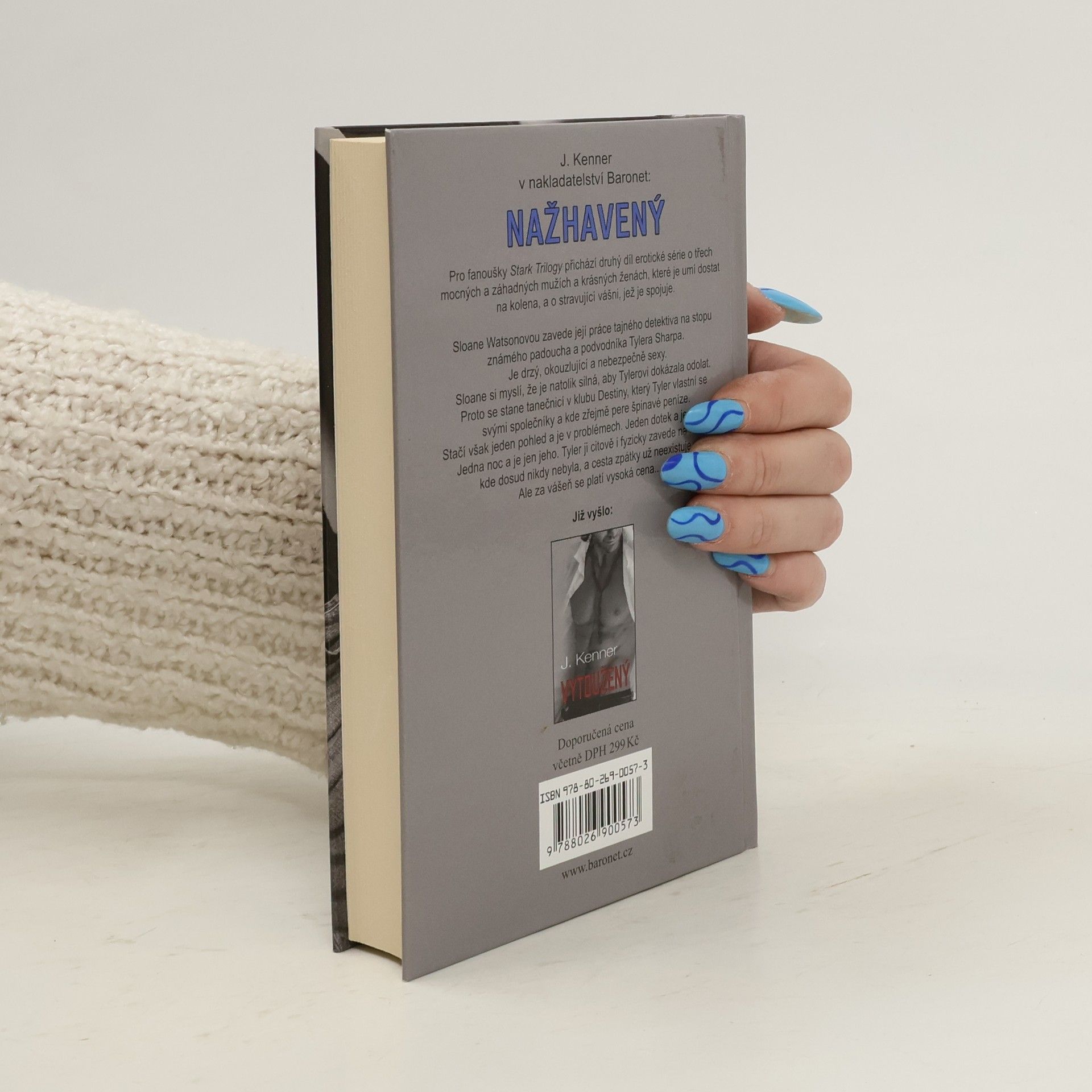 Pro fanoušky Padesáti odstínů šedi a především Stark Trilogy přichází další nová erotická série o třech mocných a záhadných mužích a krásných ženách, které je umí dostat na kolena, a o stravující vášni, která je spojuje. Ve druhém dílu s názvem Nažhavený zavede Sloane Watsonovou její práce tajného detektiva na stopu známého padoucha a podvodníka Tylera Sharpa. Je drzý, okouzlující a nebezpečně sexy. Vyrostla jsem ve víře, že existuje černá a bílá, dobro a zlo - a že některé hranice nikdy nesmím překročit. Sloane si myslí, že je tak silná, aby Tylerovi dokázala odolat. Proto se stane exotickou tanečnicí v klubu Destiny, který Tyler vlastní se svými společníky a kde pere špinavé peníze. Měla jsem mít víc rozumu a nevěřit mu, neměla jsem riskovat svoje srdce. Stačil však jeden pohled - a byla v problémech. Jeden dotek - a byla ztracená. Jedna noc - a byla jen jeho. Tyler ji citově i fyzicky zavede na místa, kde dosud nikdy nebyla, a cesta zpátky už neexistuje. Ale za vášeň se platí vysoká cena…