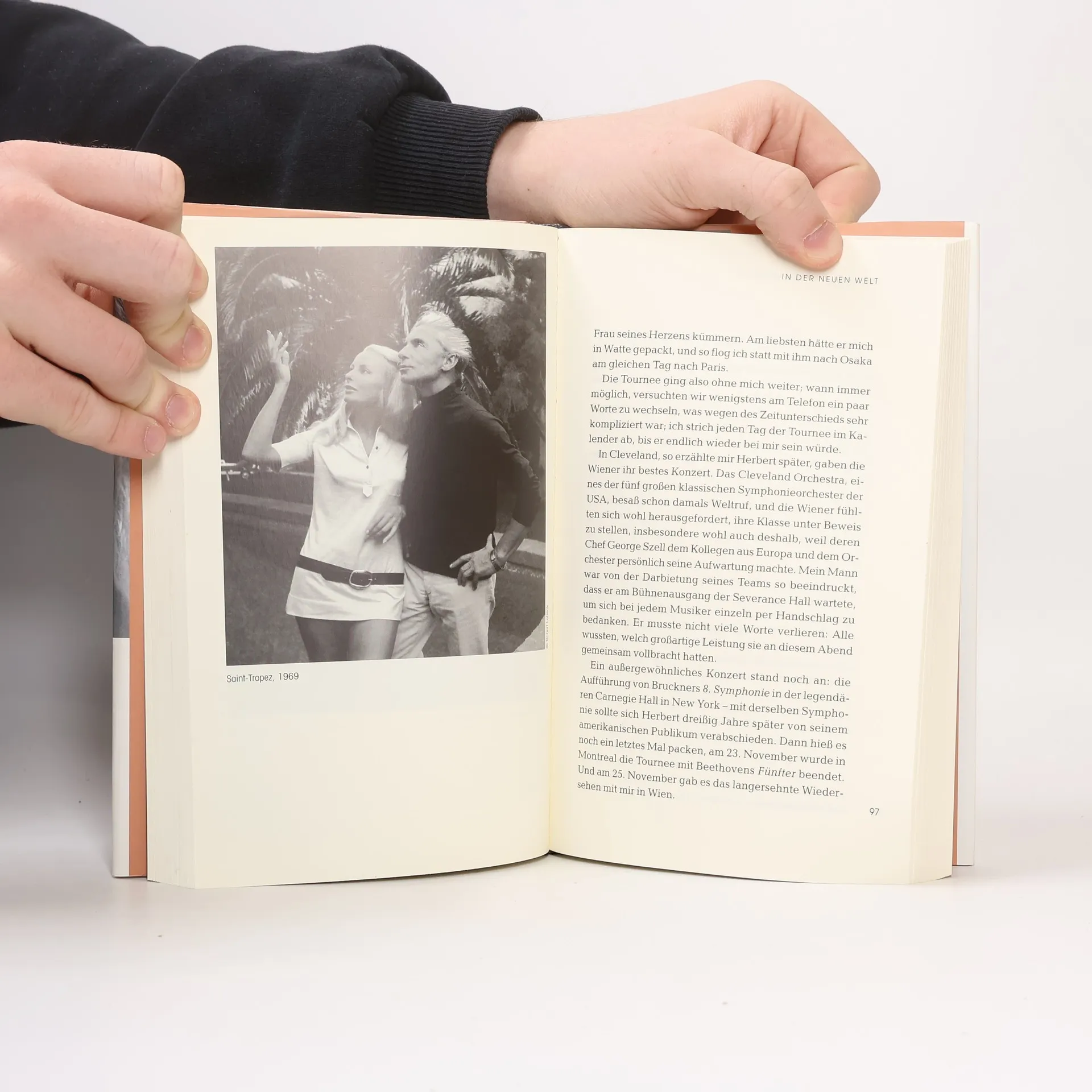 Eliette Mouet ist achtzehn, als sie Herbert von Karajan kennenlernt. Nach ihrer Hochzeit übernimmt er die künstlerische Leitung der Wiener Staatsoper, zudem ist er bereits Leiter der Salzburger Festspiele und Chefdirigent der Berliner Philharmoniker. Die beiden treffen sich zum ersten Mal auf einer Yacht in Saint-Tropez. Ein Jahr später sehen sie sich in London wieder. Gemeinsam mit einem Freund besucht sie dort ein Konzert, das Karajan dirigiert. Als er zum Dirigentenpult geht, erkennt er die junge Frau in der ersten Reihe. Von da an bis zu seinem Tod 1989 ist sie seine große Liebe. An seiner Seite taucht sie ein in die Welt der Musik. Sie begleitet ihn rund um den Globus, erlebt das Jet-Set-Leben im Kreis seiner Bewunderer und schirmt ihn ab, damit er die nötige Ruhe zum Arbeiten hat. Eliette von Karajan ist heute eine angesehene Kunstmäzenin und Förderin der Musik.